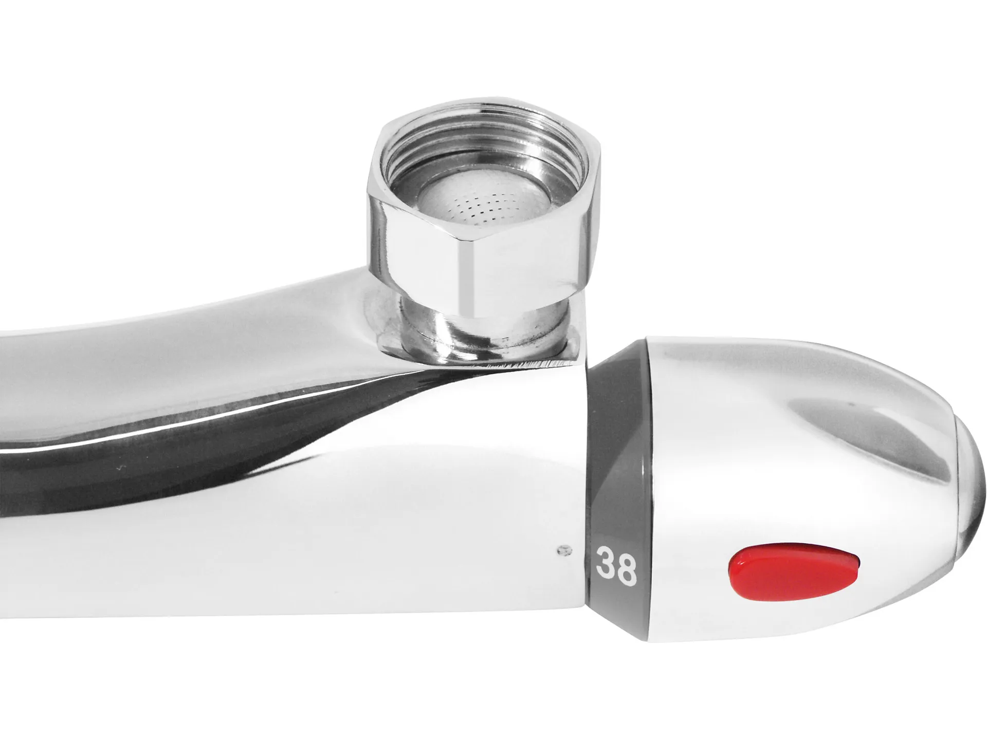 - Jednoduchost obsluhy činí z termostatických baterií optimální řešení zejména ke sprchám a vanám. Při ovládání termostatu si nejprve zvolíme na stupnici požadovanou teplotu a nastavíme vyhovující průtok. Termostat automaticky upraví průtok teplé a studené vody pomocí zvláštní mechaniky, která pracuje na principu tepelné roztažnosti speciálních materiálů. Termostat vodu nijak neohřívá, pouze zajišťuje její správné smísení. Směšování v termostatických bateriích na požadovanou teplotu proběhne během několika málo vteřin.Bezpečnost je zajištěna pojistkou proti opaření, která je nastavena na 38°C, přičemž teplotu lze podle potřeby (i během používání) měnit. Vyšší teploty je možné nastavit až po odjištění pojistky proti opaření. Baterie hlídá zvolenou teplotu s přesností ± 1°C. Při výpadku studené vody se termostat zcela uzavře a ani tehdy tak nehrozí opaření horkou vodou.
