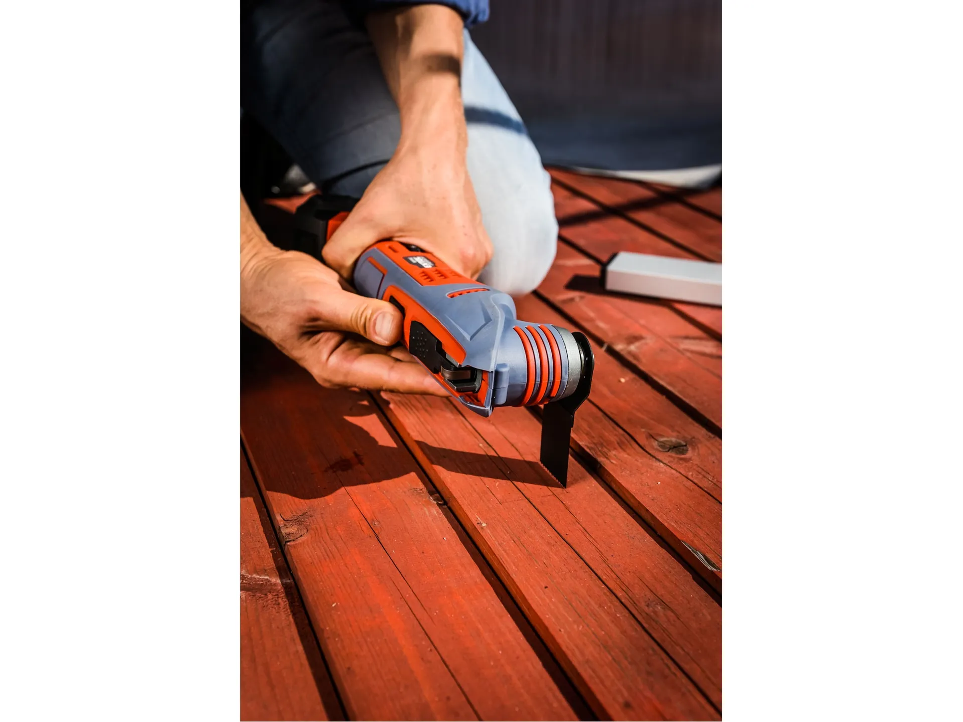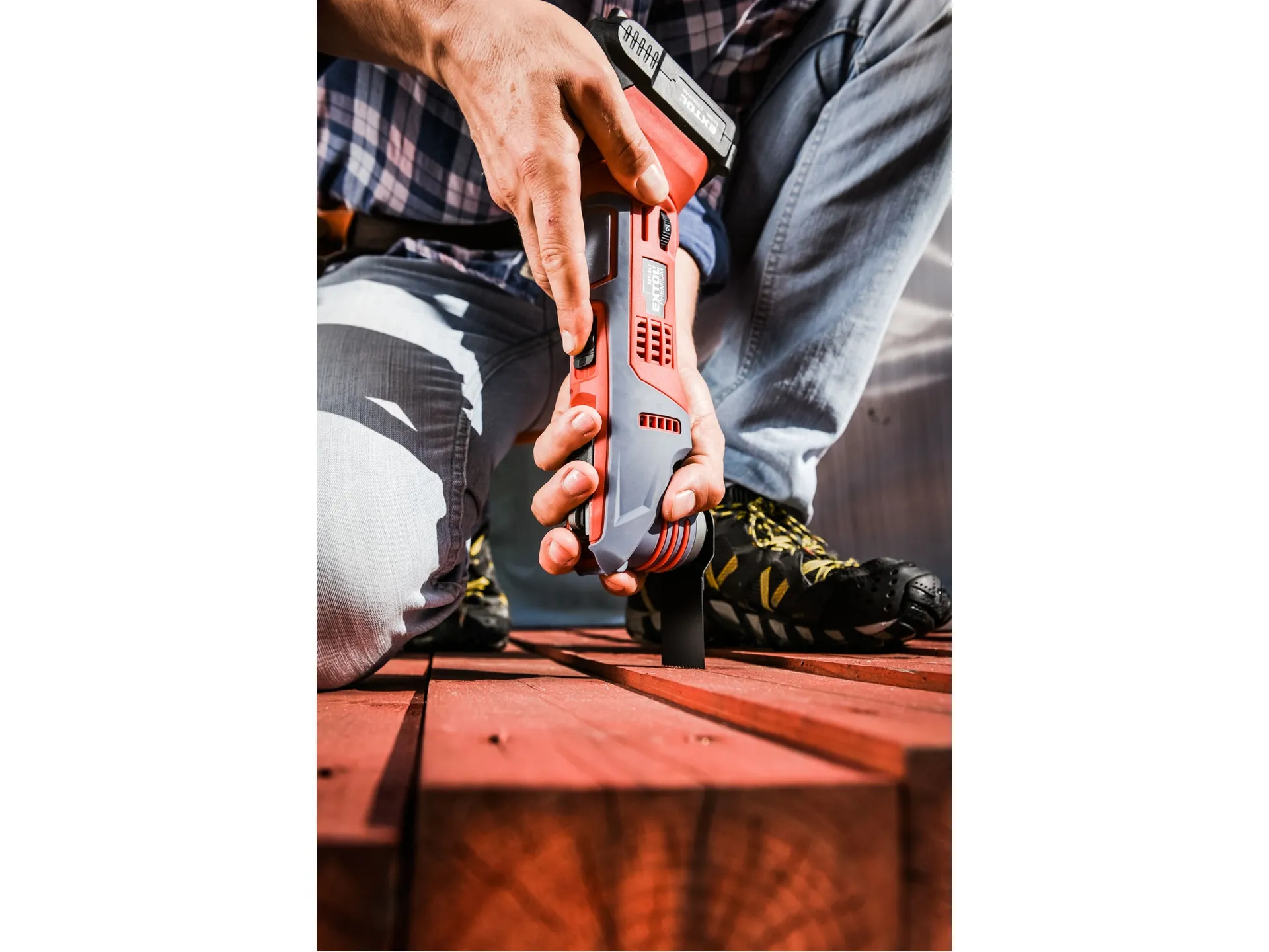 - Aku multifunkční bruska je určena k řezání a oddělování dřevěných materiálů, umělé hmoty, sádrokartonu a měkkých kovů (např. mědi, hliníku, nekalených hřebíků, slitin měkkých kovů) dále k rašplování, broušení a seškrabávání menších ploch. Nářadí umožňuje provádět přesné práce na těžko přístupných místech jako např. provádění výřezů v rozích nábytku, obkladaček apod. Její hlavní výhodou je akumulátorový pohon, který dovoluje si vzít brusku s sebou tam kde s ním potřebujete pracovat, bez ohledu na to, jestli tam je rozvod elektrické energie. Pro běžnou práci dostačují jeden nebo dva 2000mAh akumulátory, které můžete rychle nabít v rychlonabíječce, pro náročnější nebo delší práci doporučujeme větší akumulátory s kapacitou 4000–8000mAh. Akumulátor lze použít ve všech typech nářadí řady EXTOL SHARE20V. Díky použité Li-ion technologii je ho možné kdykoliv dobíjet, aniž by se tím snižovala jeho kapacita. Li-ion akumulátor ztrácí energii vlivem samovybíjení velmi pomalu a vydrží dlouho nabitý a připravený k použití.