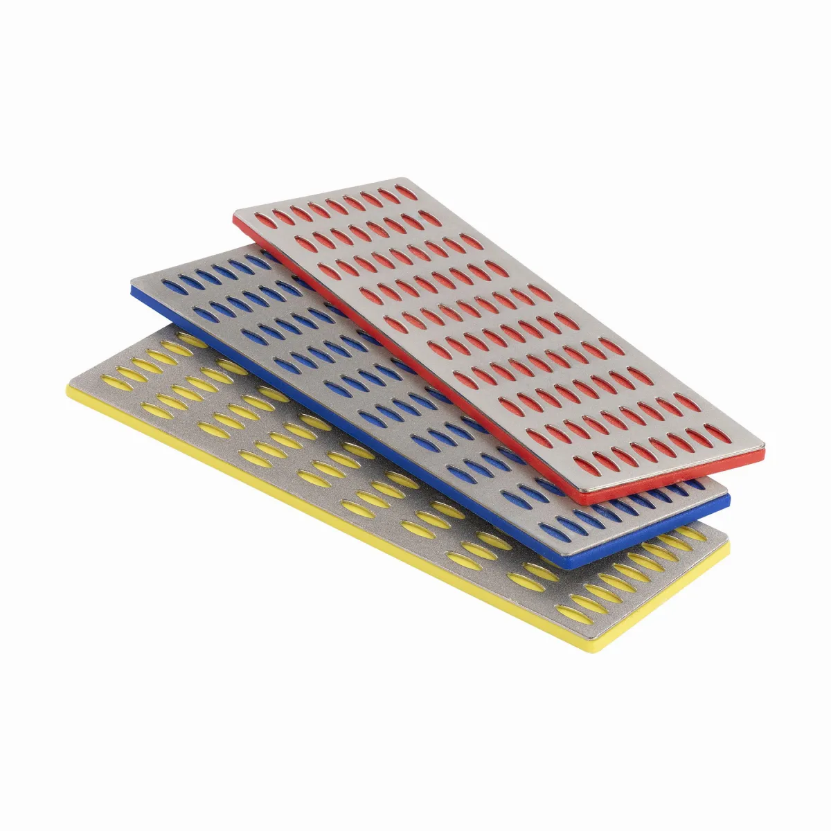 - Tři diamantové brusné desky měří 152 x 50 mm a každý má jinou zrnitost: G 325, G 600 a G 1 200.