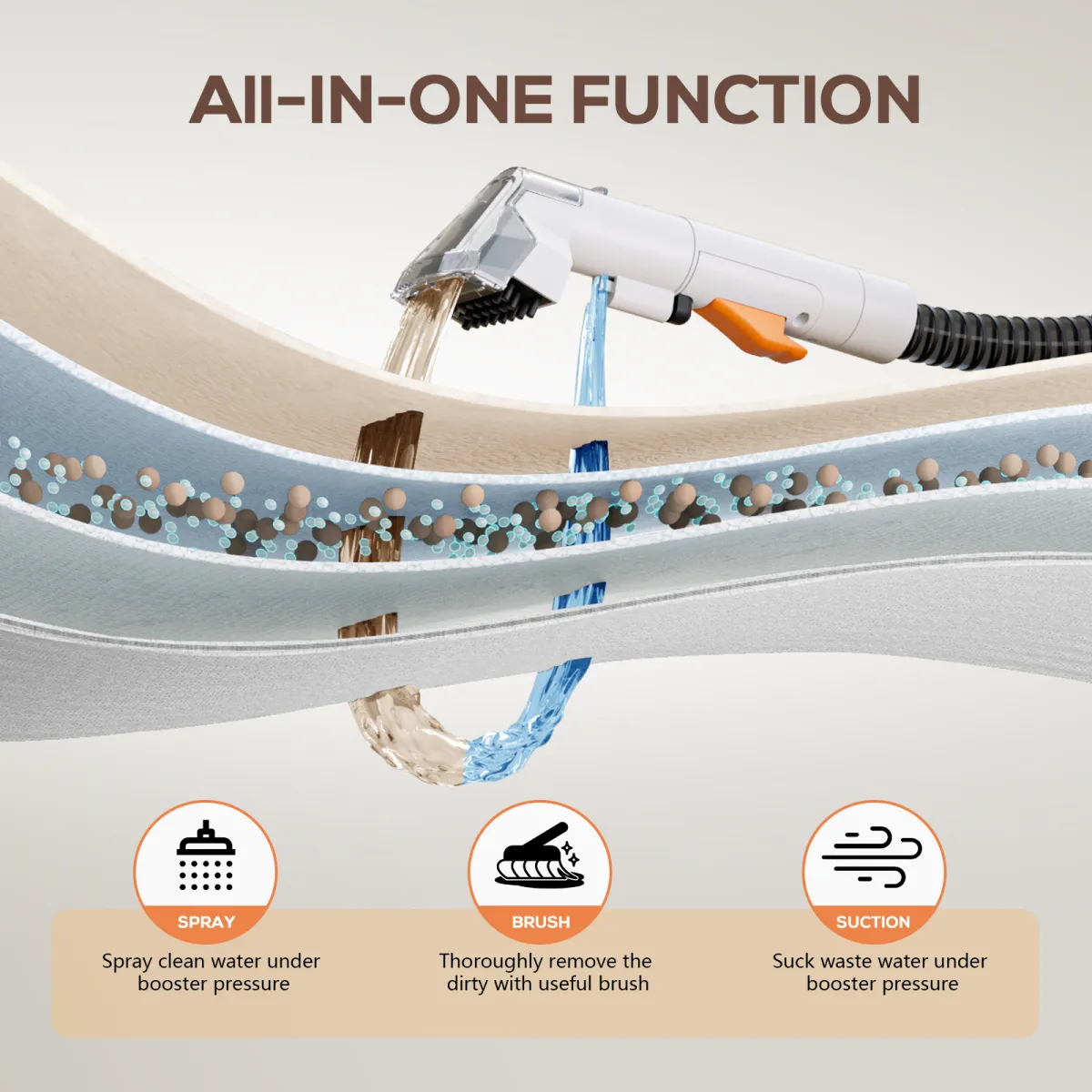 - S Teendow C5 snadno zvládnete tepování koberců a čalounění, mokré vysávání, kartáčování a odstranění různých skvrn jedním tahem.