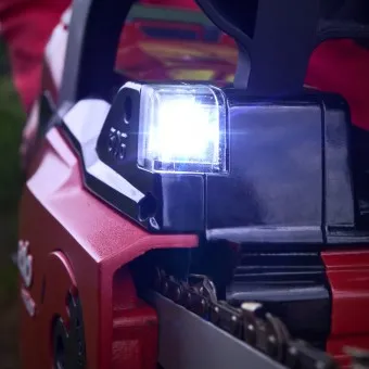 - LED kontrolky vám poskytnou důležité informace o vaší pile: Rozsvítí se, když v olejové nádrži není olej na řetěz, je zapnutá brzda řetězu nebo je aktivován režim ECO. S přídavným vypínatelným LED osvětlením můžete pracovat bezpečně a přesně i za ztížených světelných podmínek.