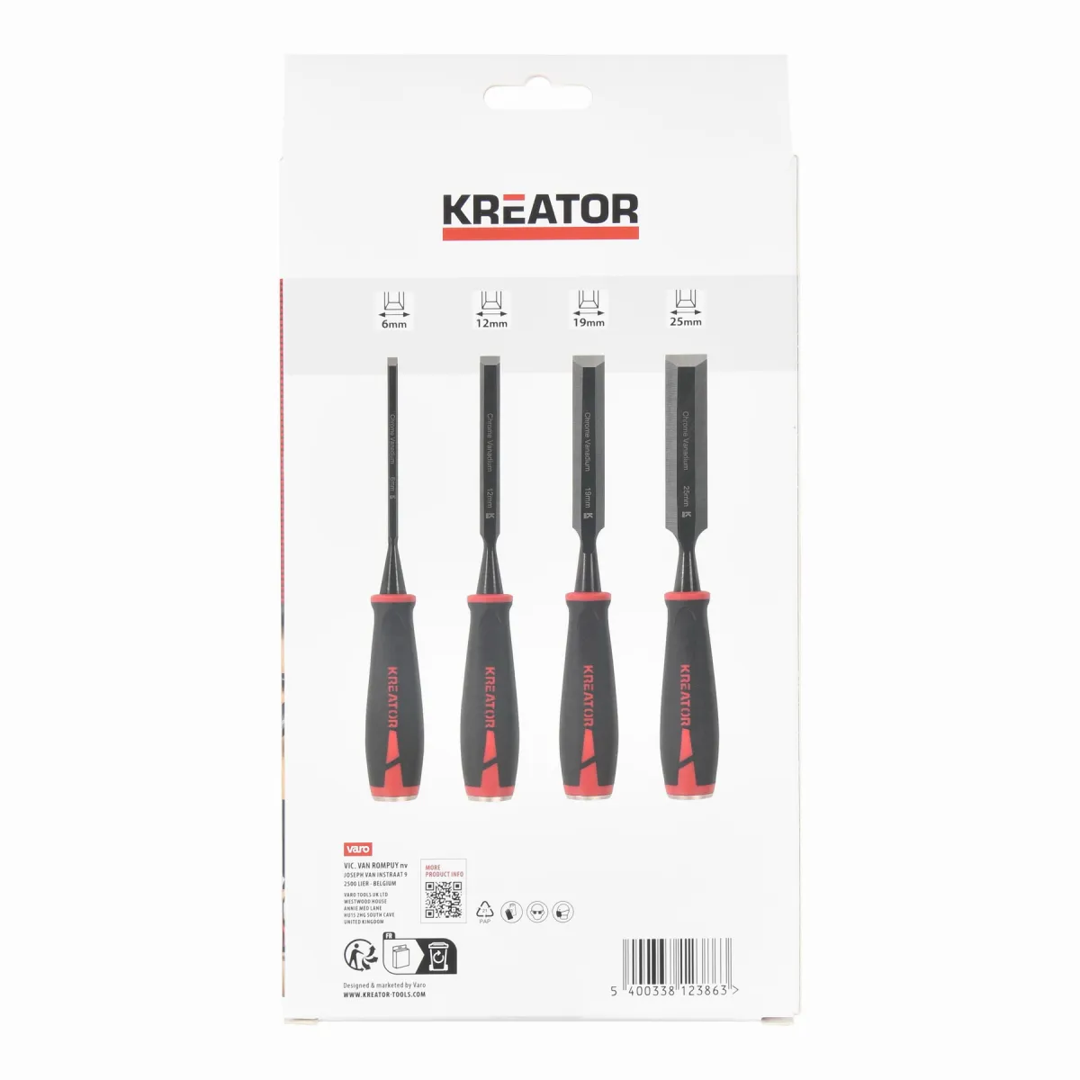 - S těmito 4 plochými dláty KRTH23709 z naší řady Kreator na dřevo vysekáte různé tvary do dřeva.