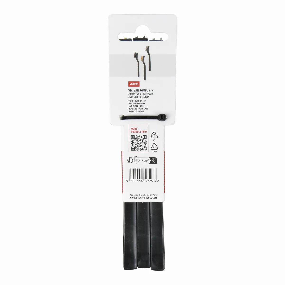 - Tato sada KRTH50101 z naší řady Kreator obsahuje 3 drátěné kartáče s různými typy štětin: nerezové, měděné a nylonové.