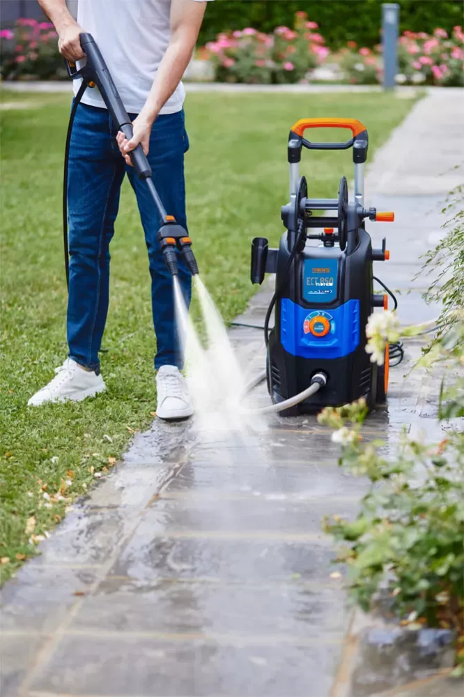 - ECT 850 je vysokotlaký čistič se systémem Dualtech (Twin Flow), který díky součinnosti dvou výkonových jednotek výrazně zvyšuje průtok vody a urychluje čištění. Výkon lze jednoduše přizpůsobit typu povrchu – od šetrného mytí dřeva, aut, kol či zahradního nábytku až po intenzivní odstranění odolných nečistot na kameni, betonu, schodech nebo zdivu. Díky dvěma tryskám je navíc velmi vhodný i pro rychlé čištění větších ploch.