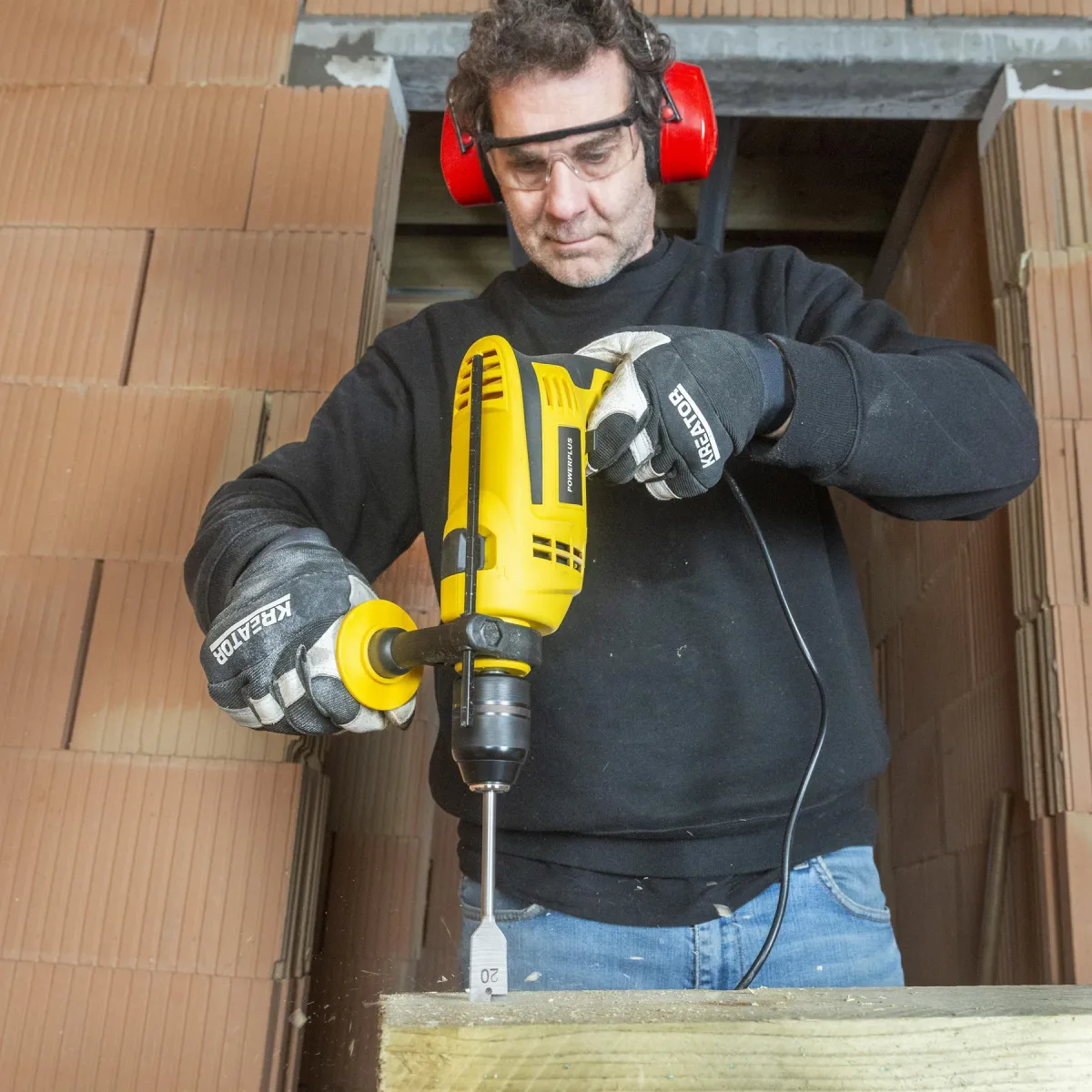 - Co s touto příklepovou vrtačkou dokážete? Používejte tuto příklepovou vrtačku s výkonem 1050 W k vrtání otvorů do tvrdých materiálů, jako je dřevo, ocel a beton.
