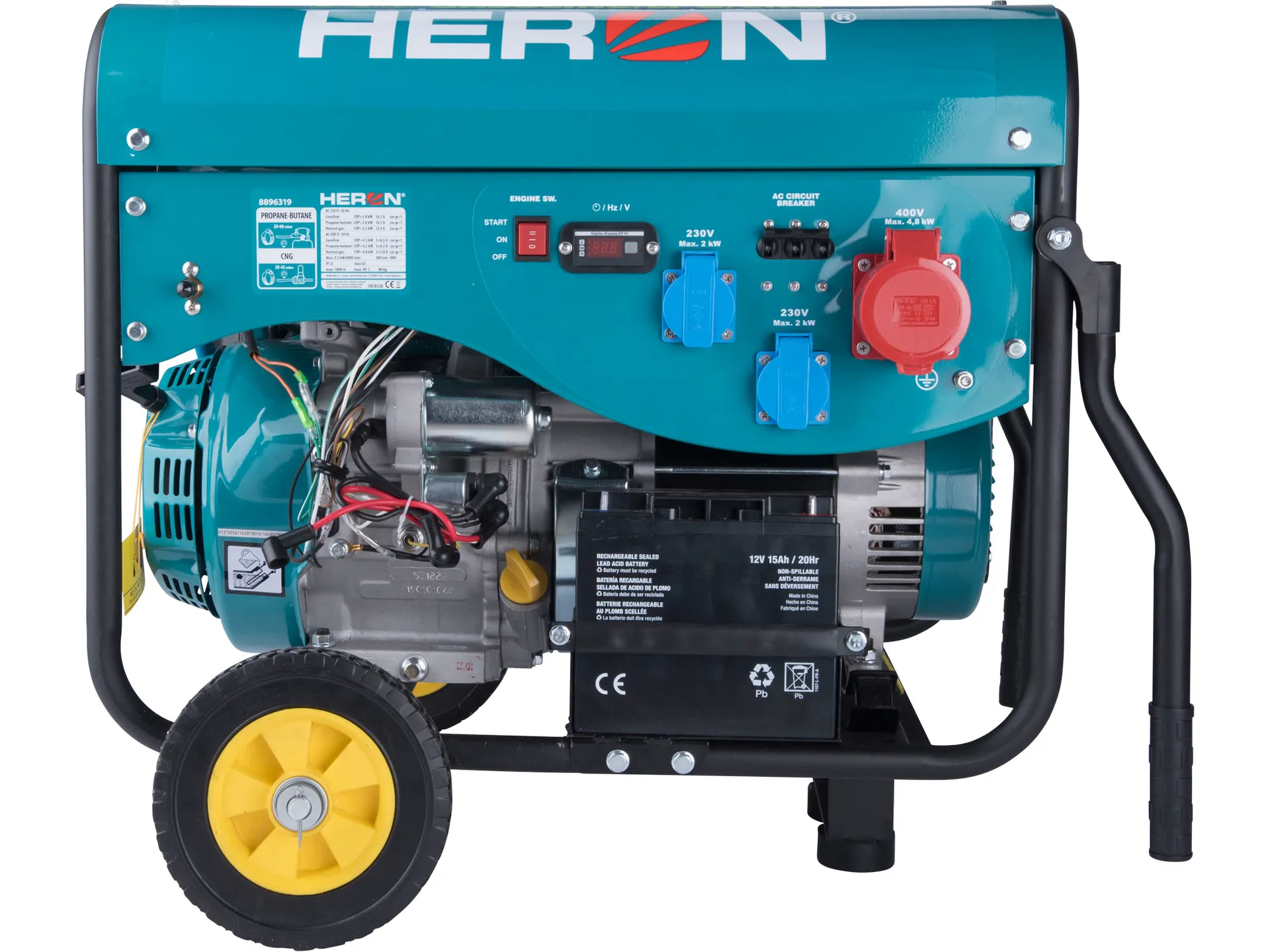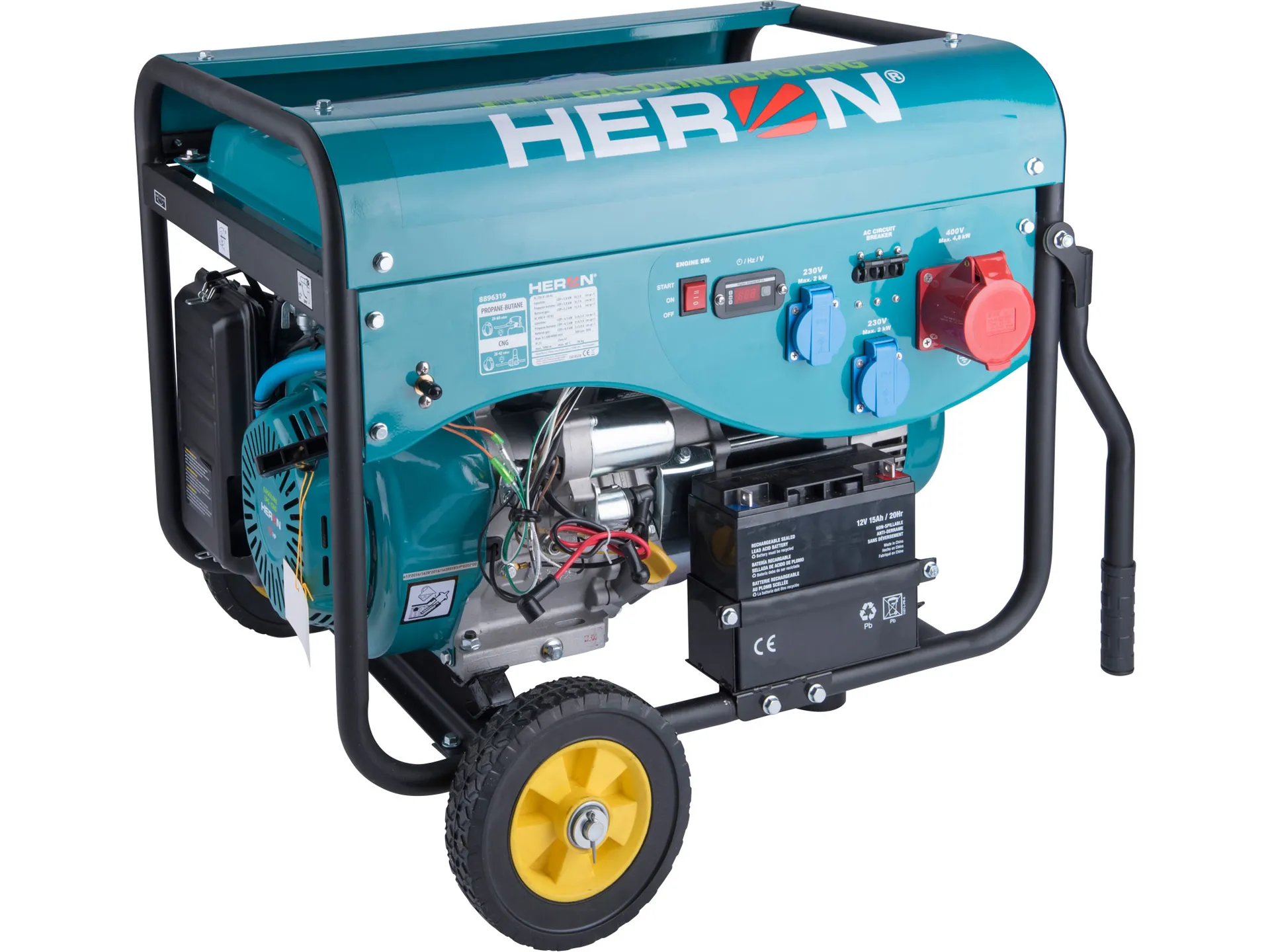 Elektrocentrála benzínová a plynová (lpg/ng) 13hp/5,5kw (400v) 2×2kw (230v), elektrický start HERON 8896319