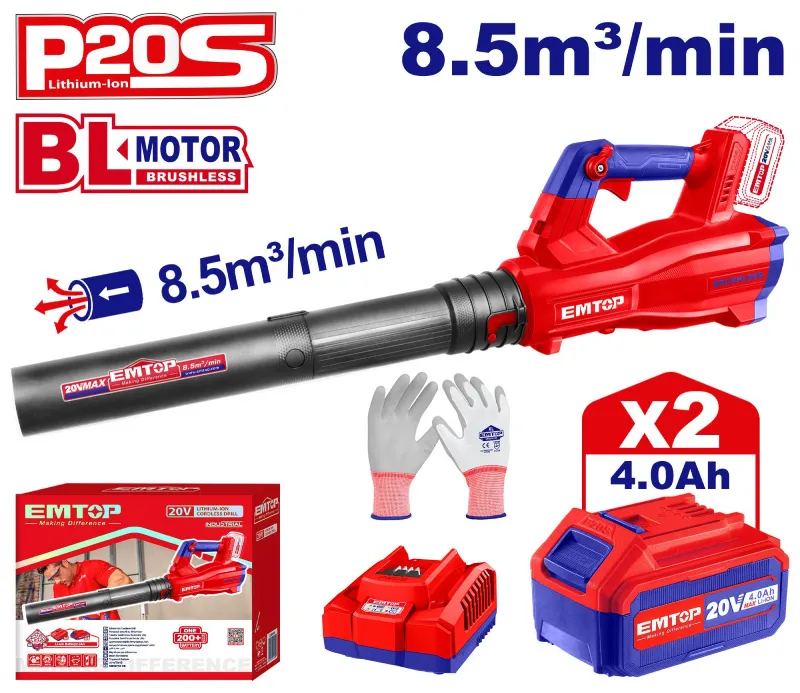 Emtop Aku fukar 20V 8,5m³/min 2x4.0Ah