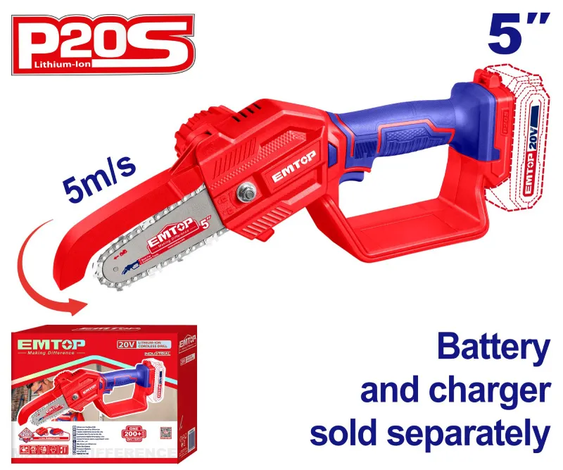 Emtop Aku prořezávací řetězová pila 20V 13cm solo