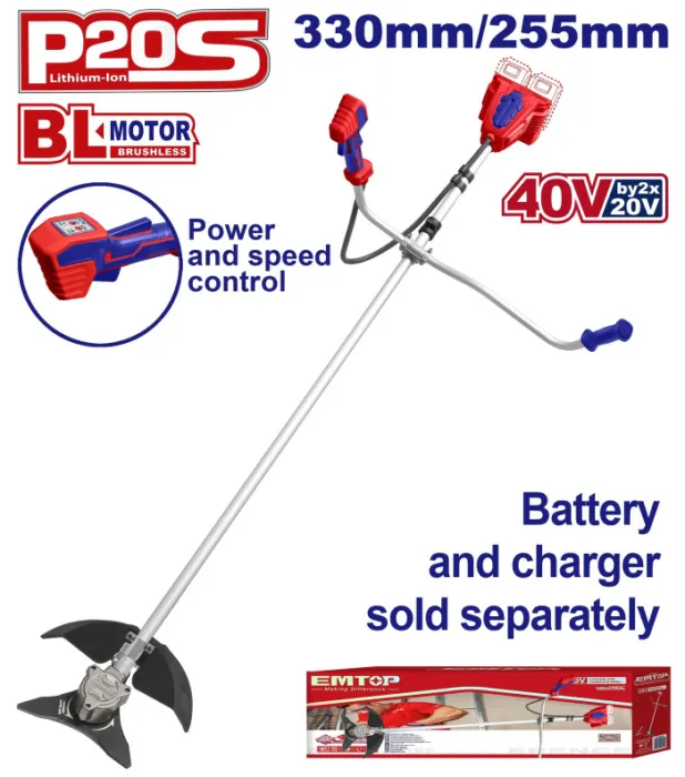 Emtop Aku strunová sekačka/křovinořez 40V 33cm 2x4.0Ah