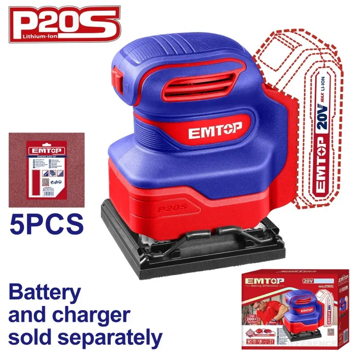 Emtop Aku vibrační bruska 20V 110x100mm solo