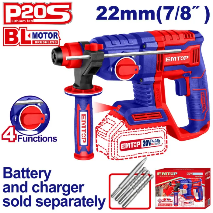 Emtop Aku vrtací a sekací kladivo 20V 22mm 2,0 J solo
