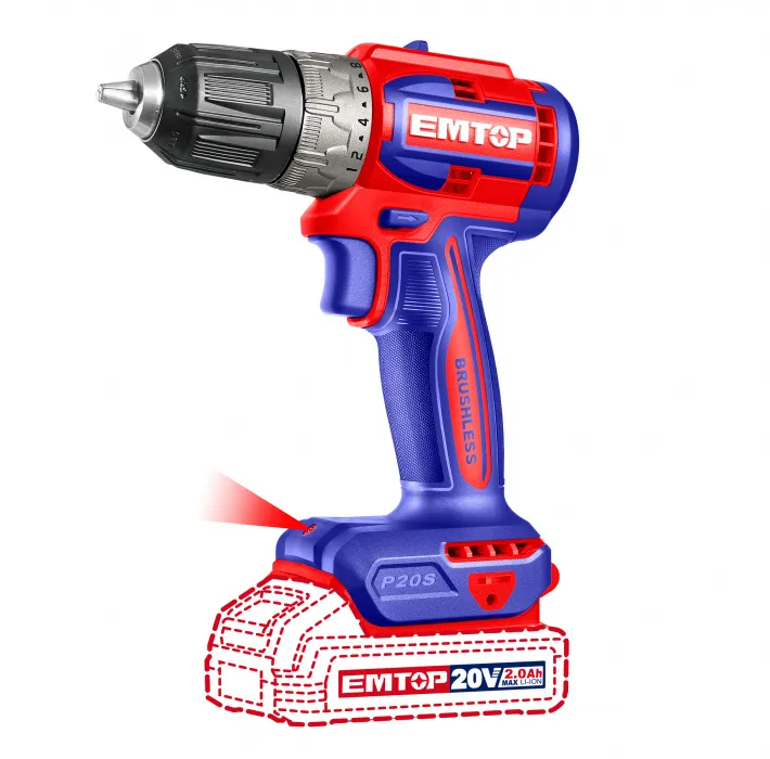 Emtop Aku vrtací šroubovák s příklepem 20V 76Nm 2x2.0Ah