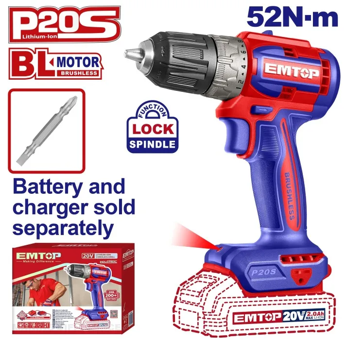 Emtop Aku vrtací šroubovák 20V 52Nm solo