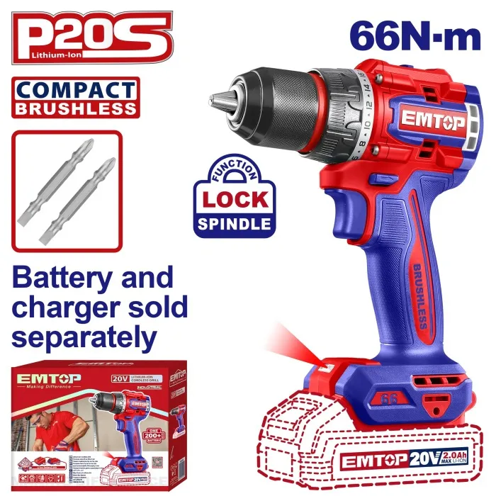 Emtop Aku vrtací šroubovák 20V 66Nm solo