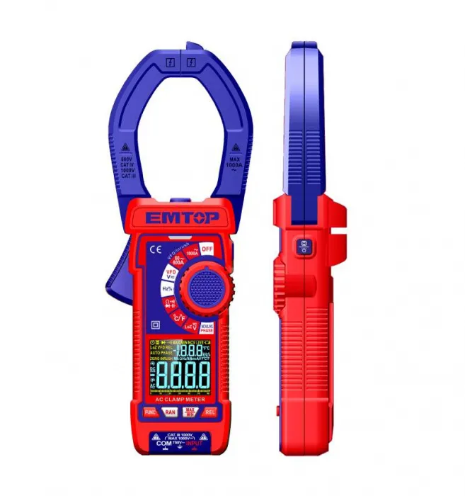 Emtop Digitální klešťový multimetr AC 1000A RMS 6000