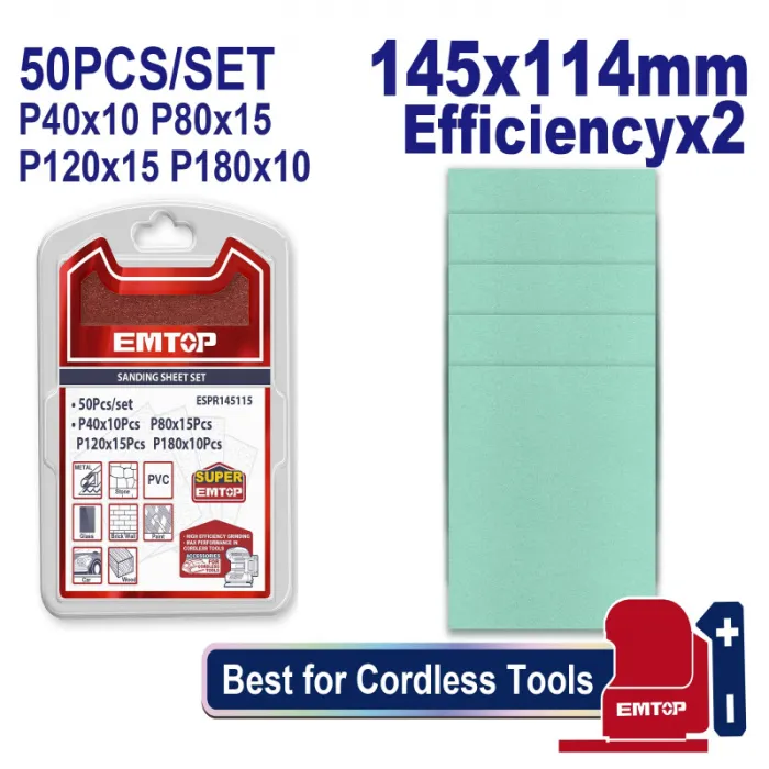 Emtop Sada 50 ks brusných papírů 145x114mm