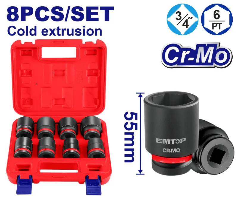 Emtop Sada 8 ks rázových nástrčných hlavic 3/4" L-55 mm