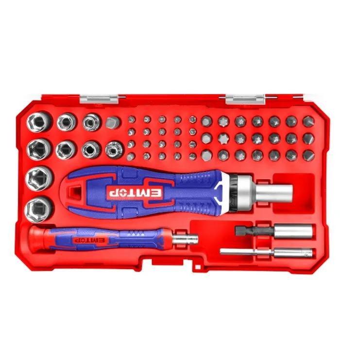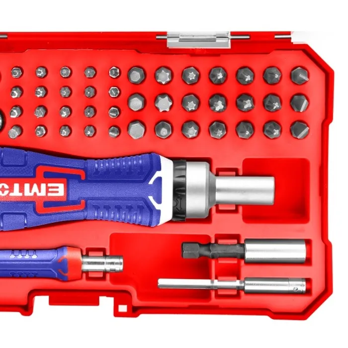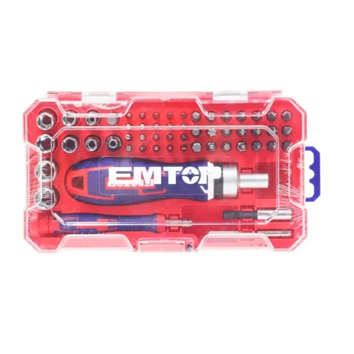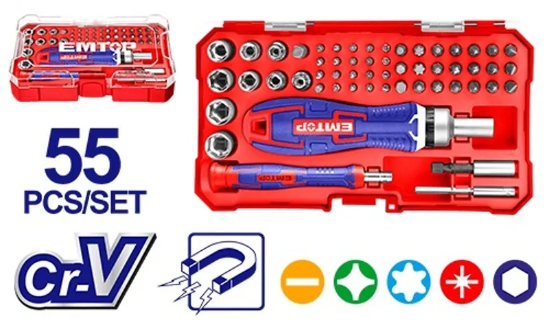 Emtop Sada bitů a hlavic s ráčnovým šroubovákem 55 ks