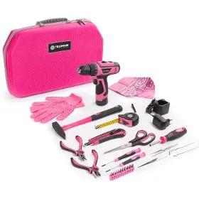 - Sada nářadí s vrtačkou FDG 5026-28R od značky Fieldmann nadchne především ženy, a to díky své pastelově růžové barvě. Kutilky, které si troufnou na údržbářské činnosti, ocení i skvělou skladnost nářadí. Tato univerzální šikovná sada se hodí na běžné opravy a údržbu v domácnosti. Využijete ji doma, v dílně i na zahradě. Zahrnuje praktickou vrtačku, kombinované kleště, kladivo, šroubováky, nůžky, 3metrové měřící pásmo, ochranné rukavice, šátek na hlavu a mnoho dalšího. Potřebná práce se okamžitě stane zábavou, ať už budete pracovat sami nebo s nějakým pomocníkem. Sada bude vždy hezky po ruce, připravená na jakoukoli výzvu.