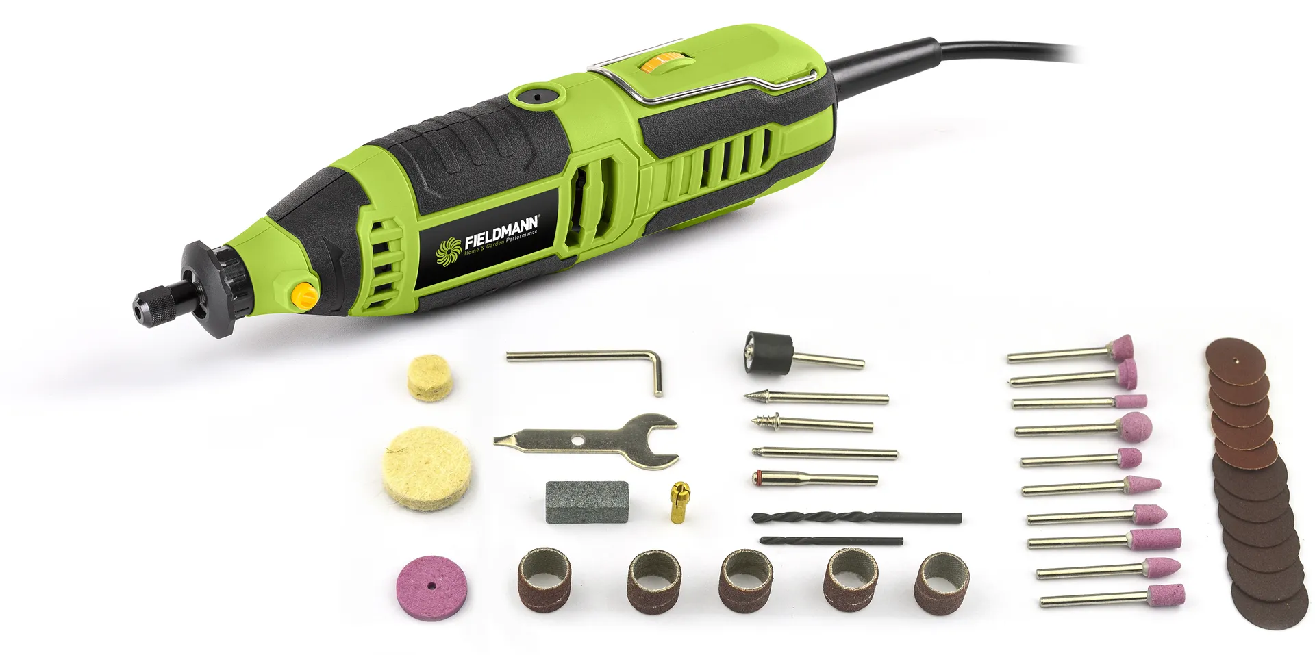 - Skvěle propracovaná modelářská bruska ověřené značky FIELDMANN je všestranný univerzální nástroj pro domácí kutily, drobné řemeslníky i hobby nadšence. Jedná se o mini přímou brusku s výkonem 170 Wattů a plynulou regulací otáček. Otáčky je možné regulovatv rozmezí 10 000 – 36 000 otáček za minutu. Je vhodná pro opracování jak měkkých, tak i tvrdých materiálů. Skvěle se drží a snadno i rychle v ní vyměníte pracovní nástavce. Navíc k ní obdržíte 40 kusů příslušenství zdarma. To vše doplněno o ergonomické madlo s měkčenou rukojetí.