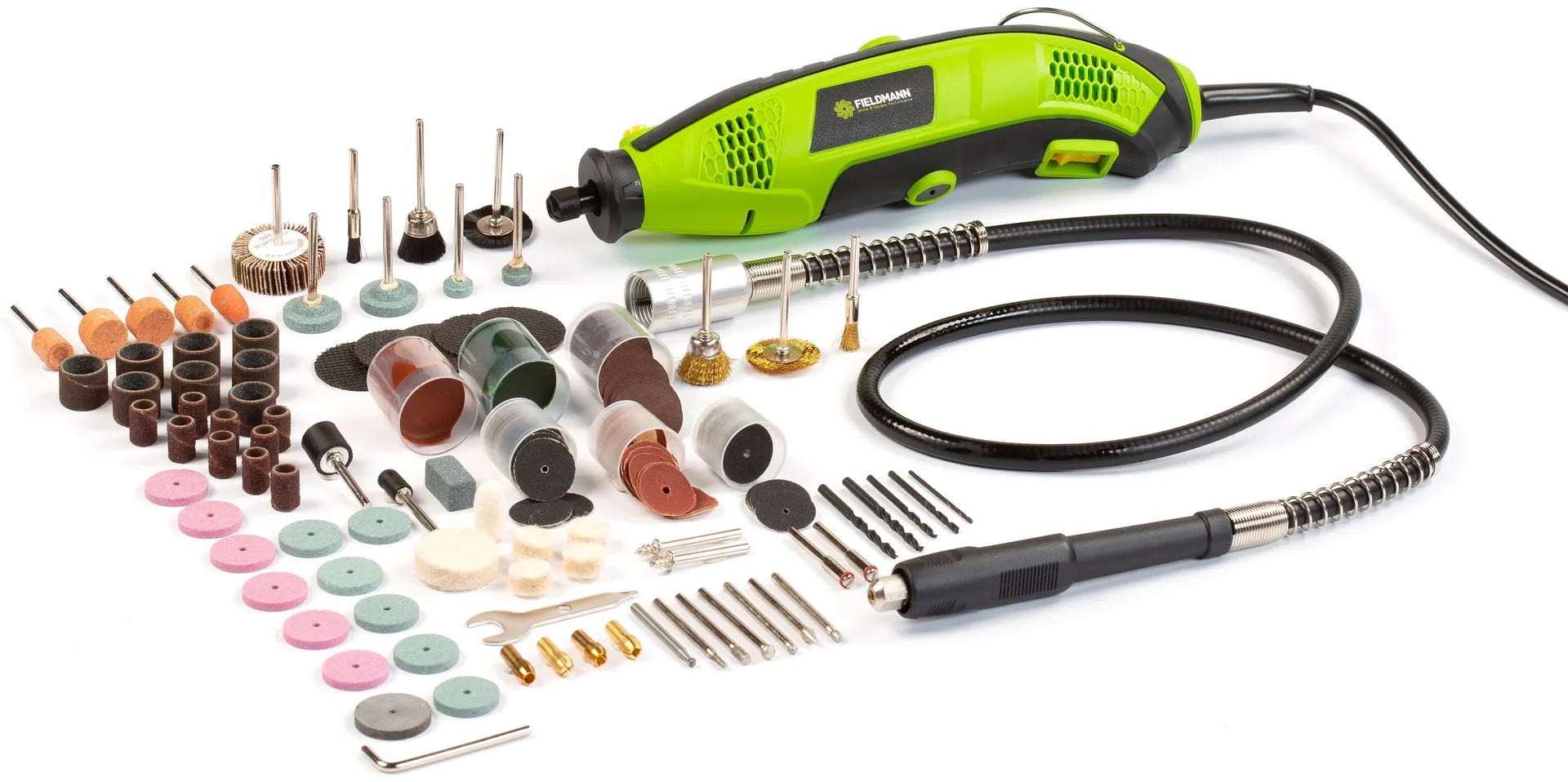 - Multifunkční bruska FIELDMANN 200171-E s regulací otáček by neměla chybět v dílně milovníka perfektních a drobných detailů. Dodává se s celou řadou nástavců a příslušenství, které vám umožní zvládnout jakýkoliv úkol s přesností a lehkostí. Toto nářadí však není určeno pouze pro profesionály. Díky kompaktním rozměrům a lehké konstrukci se s ním snadno manipuluje, takže je ideální i pro hobby a kutily. Skvělým pomocníkem pro mikropráce je bovden napojený přímo na brusku, se kterým můžete manipulovat stejně jako s tužkou, čímž dosáhnete precizního výsledku. Nástroj také můžete použít k vrtání, broušení, smirkování a leštění, ale i rytí, řezání či odstraňování rzi. Všestrannost tohoto variabilního náčiní ocení každý, kdo hledá perfektní finiš a zaměřuje se na každý nejmenší detail u svého projektu.