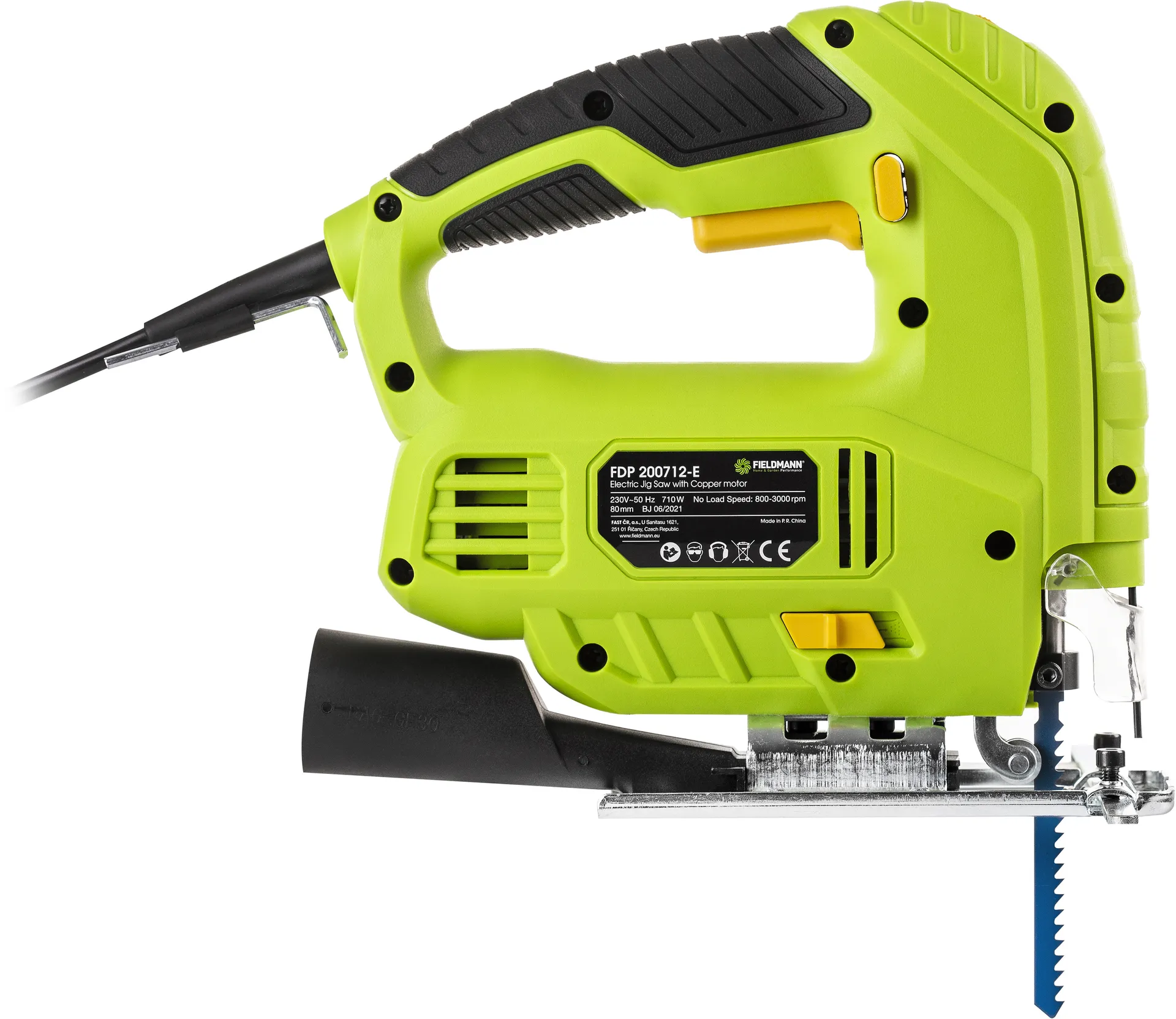 - Elektrická přímočará pila od renomovaného výrobce FIELDMANN zajistí dokonalý řez díky ergonomické rukojeti a regulaci otáček. Tato pila dosahuje dostatečného výkonu díky plnému využití síly 710W. O komfortní práci se kromě pogumované rukojeti stará též možnost nastavení úhlu řezu. V balení naleznete kromě pravoúhlého držáku vzdálenosti řezu též 1ks pilového listu.