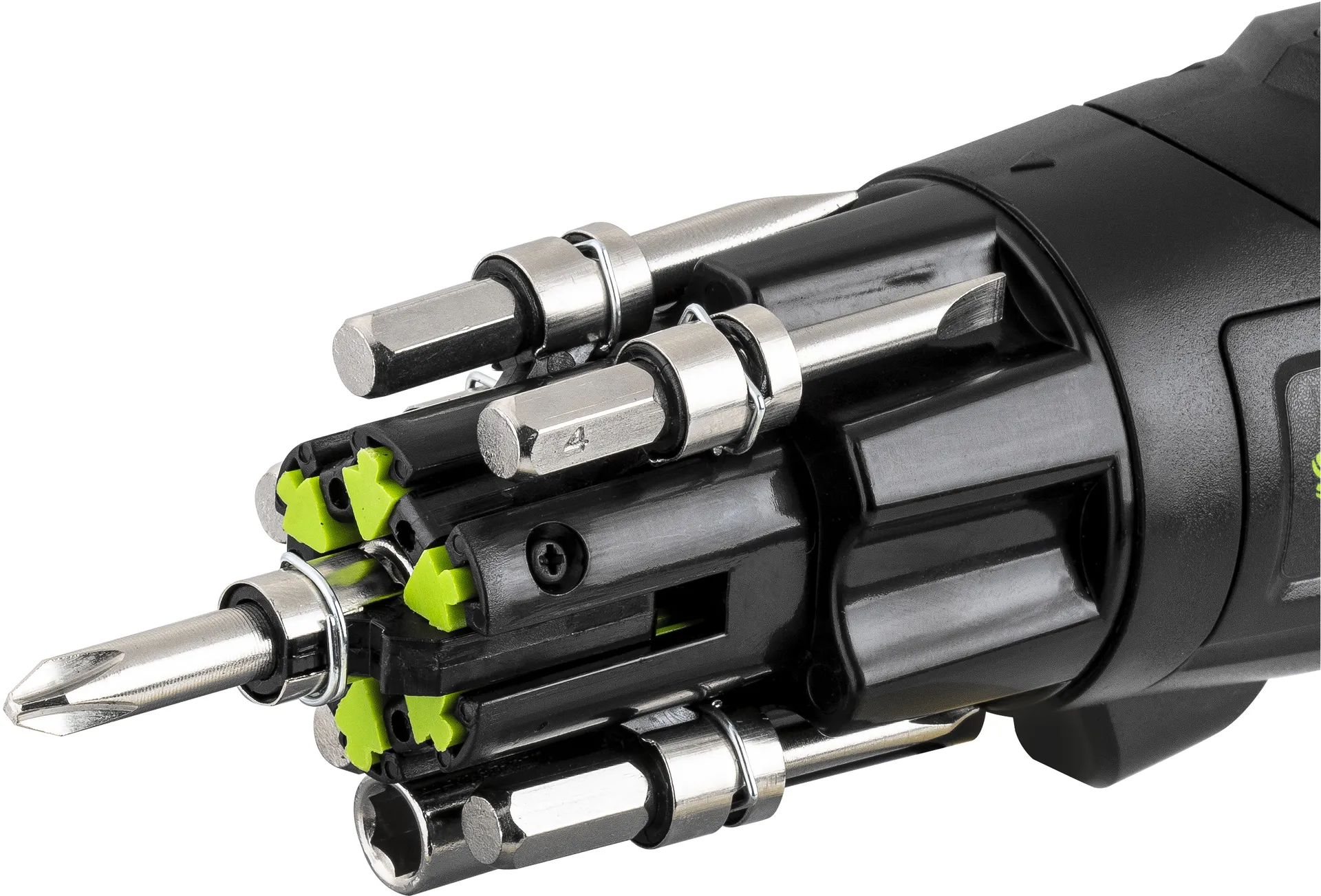 - Hlavice se 6ti bity upevněnými individuálně na otočných ramenech