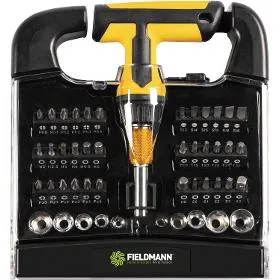 - Šroubovák s bity FIELDMANN je ideálním pomocníkem pro každého, kdo potřebuje spolehlivé a univerzální nářadí pro domácí i profesionální použití. Tento set obsahuje vše, co potřebujete k rychlé a efektivní práci.Součástí balení je T-šroubovák s ergonomickým designem, který zajišťuje pohodlný úchop a maximální sílu při šroubování. Dále zde najdete magnetickou prodlužovací tyč, která usnadňuje přístup i k těžko dostupným místům. Sada obsahuje také 10 ks bitů velikosti 4–13 mm a 36 ks 25mm bitů, které pokrývají všechny běžné typy a velikosti šroubů, jako jsou křížové, ploché, torxové či hexagonální bity. Vše je přehledně uspořádáno v praktickém průhledném boxu, který nejen chrání nářadí před poškozením, ale zároveň umožňuje snadnou orientaci a rychlý výběr potřebného bitu.