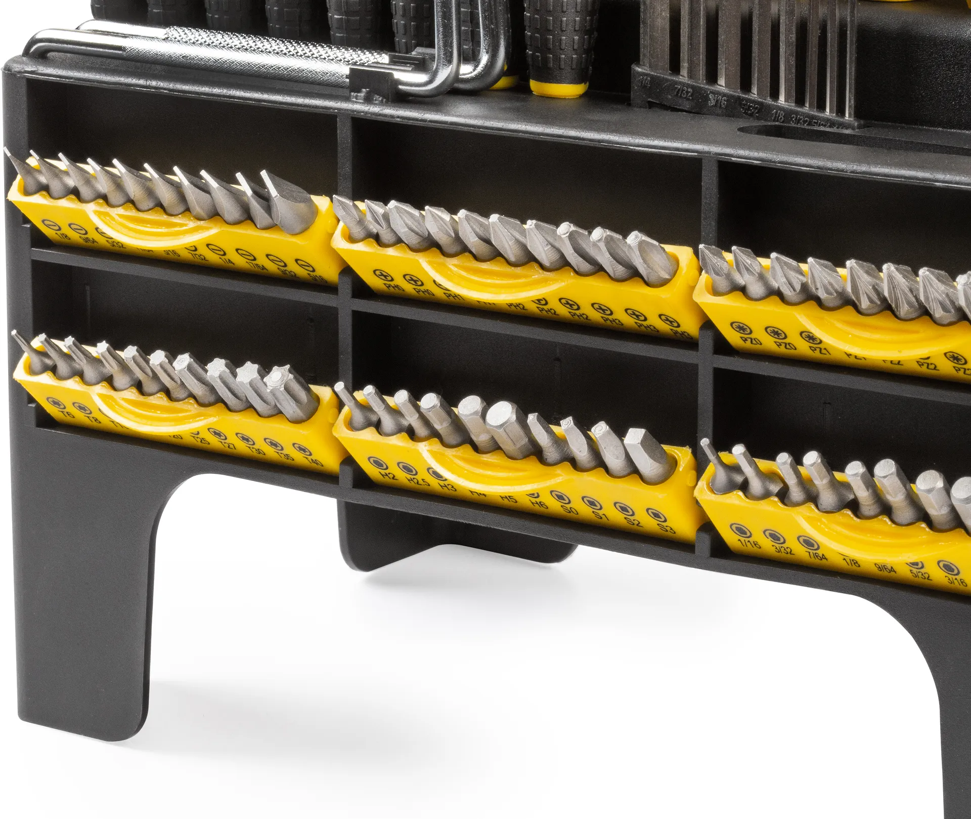 - Samostatně neprodejné! Bližší informace hledejte v naší akční nabídce TOOL MIX.Obsahuje nejpoužívanější typyChromvanadové, satinovaný povrchMagnetické hrotyErgonomické protiskluzové rukojetiPraktický stojánek s možností zavěšeníVýklopný držák na šroubovací bity