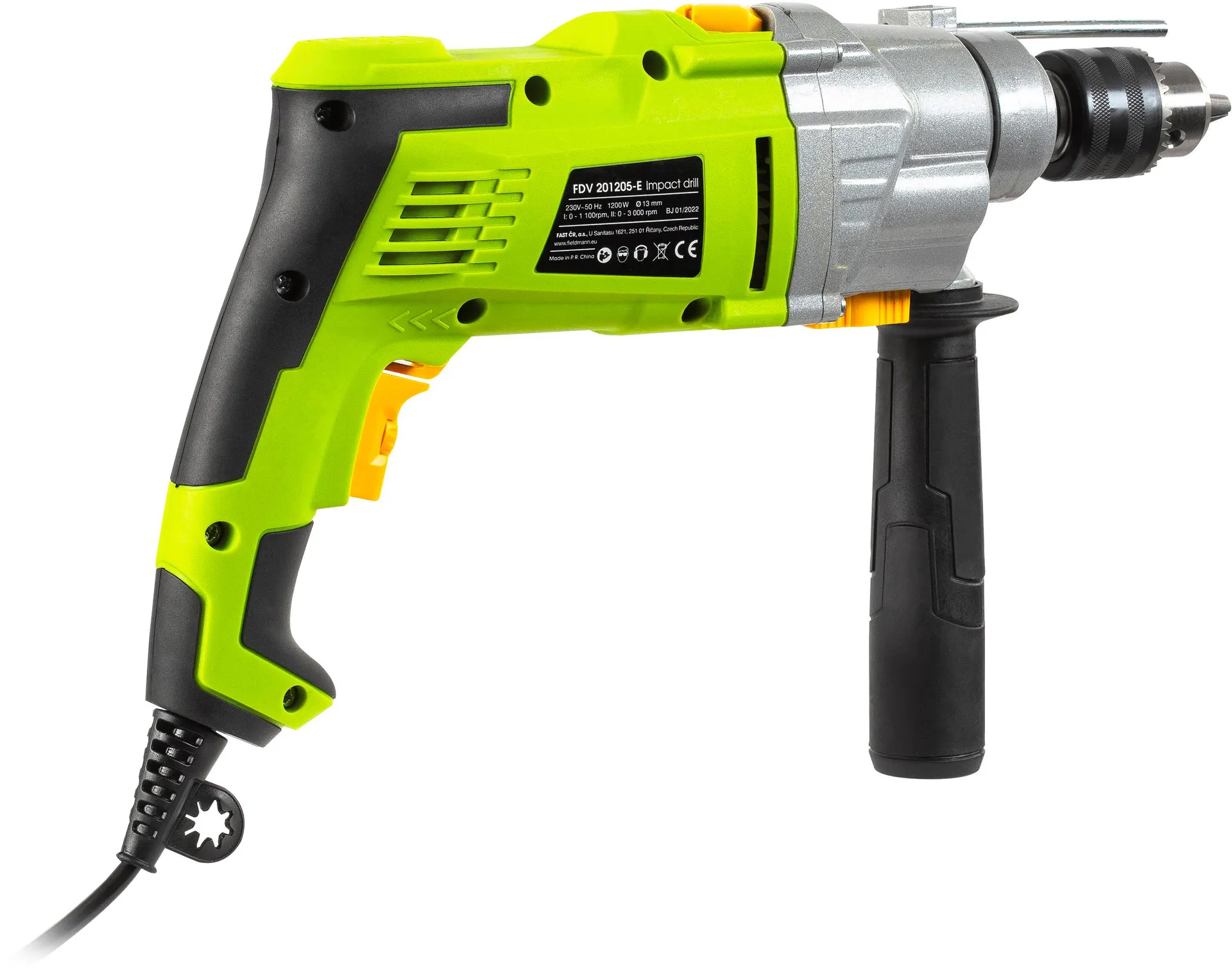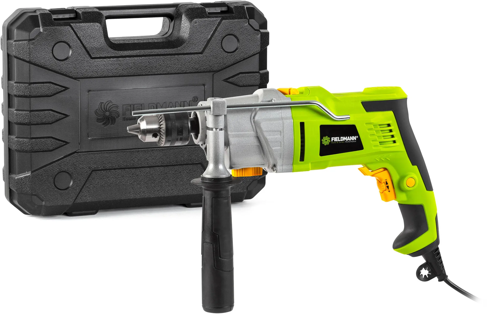 - Příklepová vrtačka FIELDMANN je prémiový stroj, který by neměl chybět ve výbavě žádného kutila an profesionála. Zaujme především svým precizním zpracováním, které oproti konkurenci nabídne výkon 1 200 W ve spojení s kovovým sklíčidlem do průměru 13 mm spolu s možností nastavení rychlosti otáček přímo na spínači. V kombinaci s ergonomickou rukojetí a přídavným madlem zajišťuje vynikající ovladatelnost a skvělý komfort i při dlouhém a precizním vrtání.