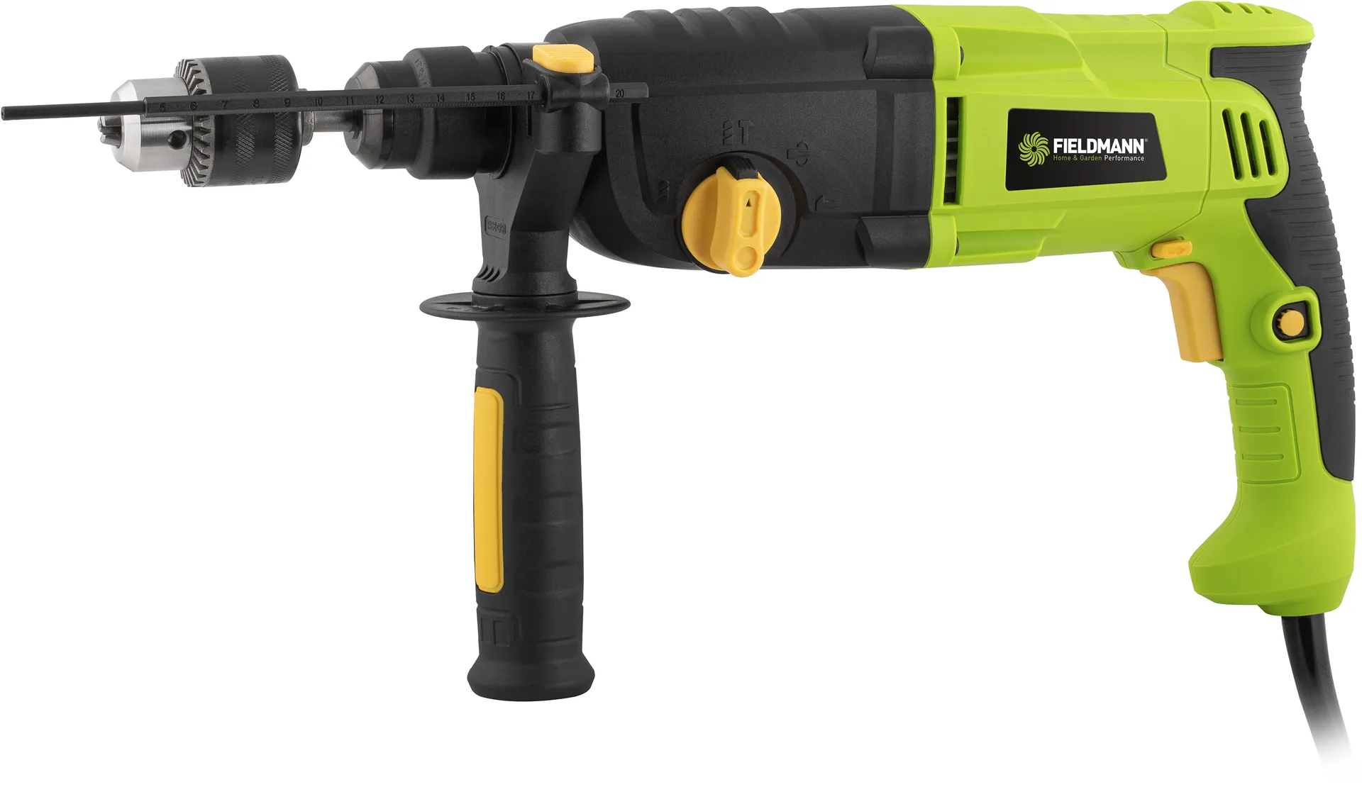 - Příklepová vrtačka je nepostradatelným pomocníkem každého seriózního kutila. Tam, kde nestačí obyčejná vrtačka, přichází na řadu příklep. FIELDMANN FDV 211050-E je vyzbrojena 1 050 W příkonem, s jehož pomocí je schopna vyvrtat díru hloubky 26 mm do betonu, 13 mm do kovu a až 42 mm do dřeva. V porovnání ceny a výkonu nenajdeme mnoho lepších produktů na trhu. Praktické rychloupínací sklíčidlo SDS PLUS zaručuje jednoduchou výměnu mezi 3 vrtáky a 2 majzlíky, čímž usnadňuje práci a šetří čas. V horní části vrtačky najdete otočný ovladač, s jehož pomocí si nastavíte nářadí tak aby vyhovovalo právě prováděné práci. Intuitivní používání vrtačky dělá z tohoto nářadí šikovného pomocníka do každé dílny nebo domácnosti, a napájecí kabel dostatečné délky vám umožní práci na jakémkoliv projektu, který si vymyslíte.