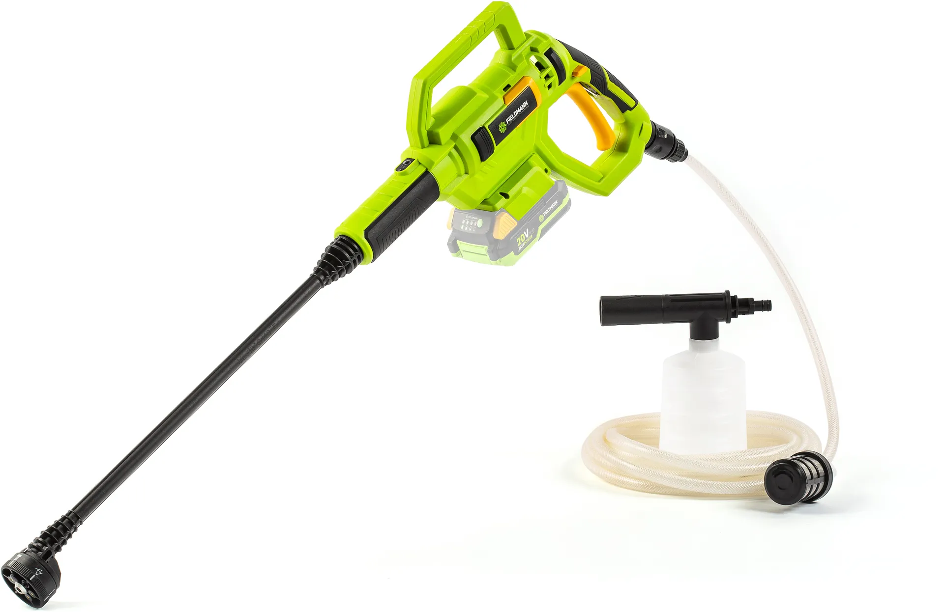 - Součástí balení: multifunkční tryska, samonasávací hadice a nádoba na šampón
