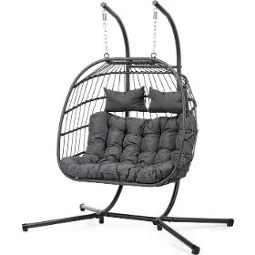- Sedací koš s ocelovým rámem je vypletený umělým ratanem