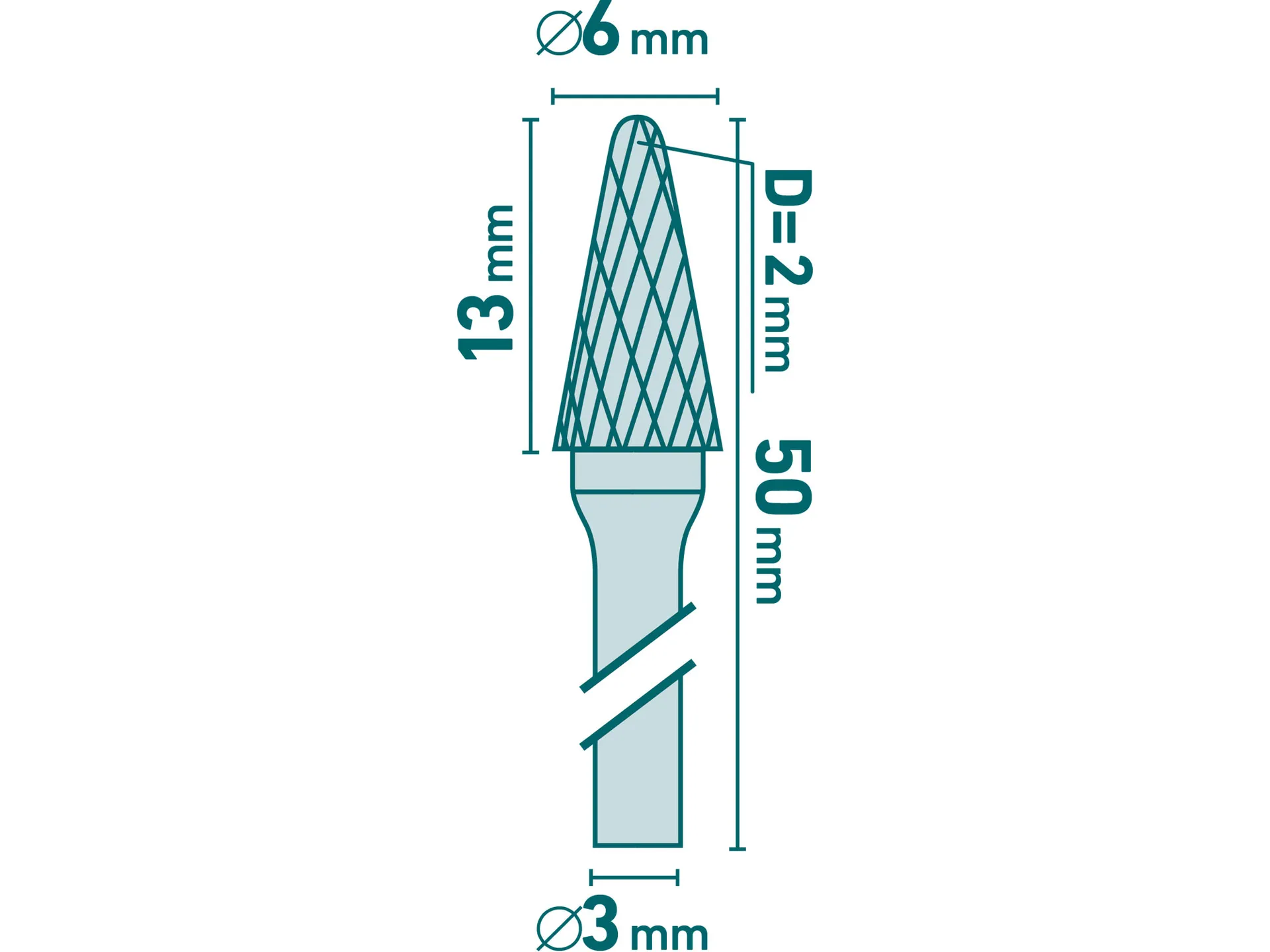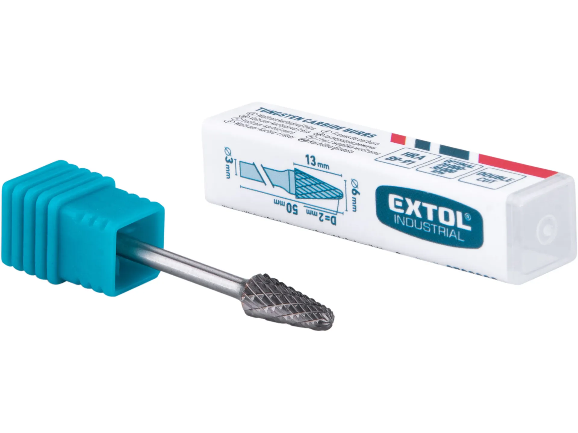 Fréza karbidová, konická zakulacená, ⌀6x13mm, ⌀stopky 3mm, sek střední (double-cut) EXTOL INDUSTRIAL 8703883