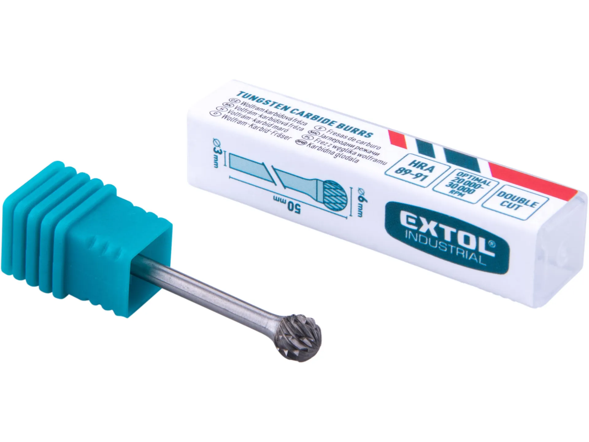 Fréza karbidová, kulová, ⌀6mm, ⌀stopky 3mm, sek střední (double-cut) EXTOL INDUSTRIAL 8703833
