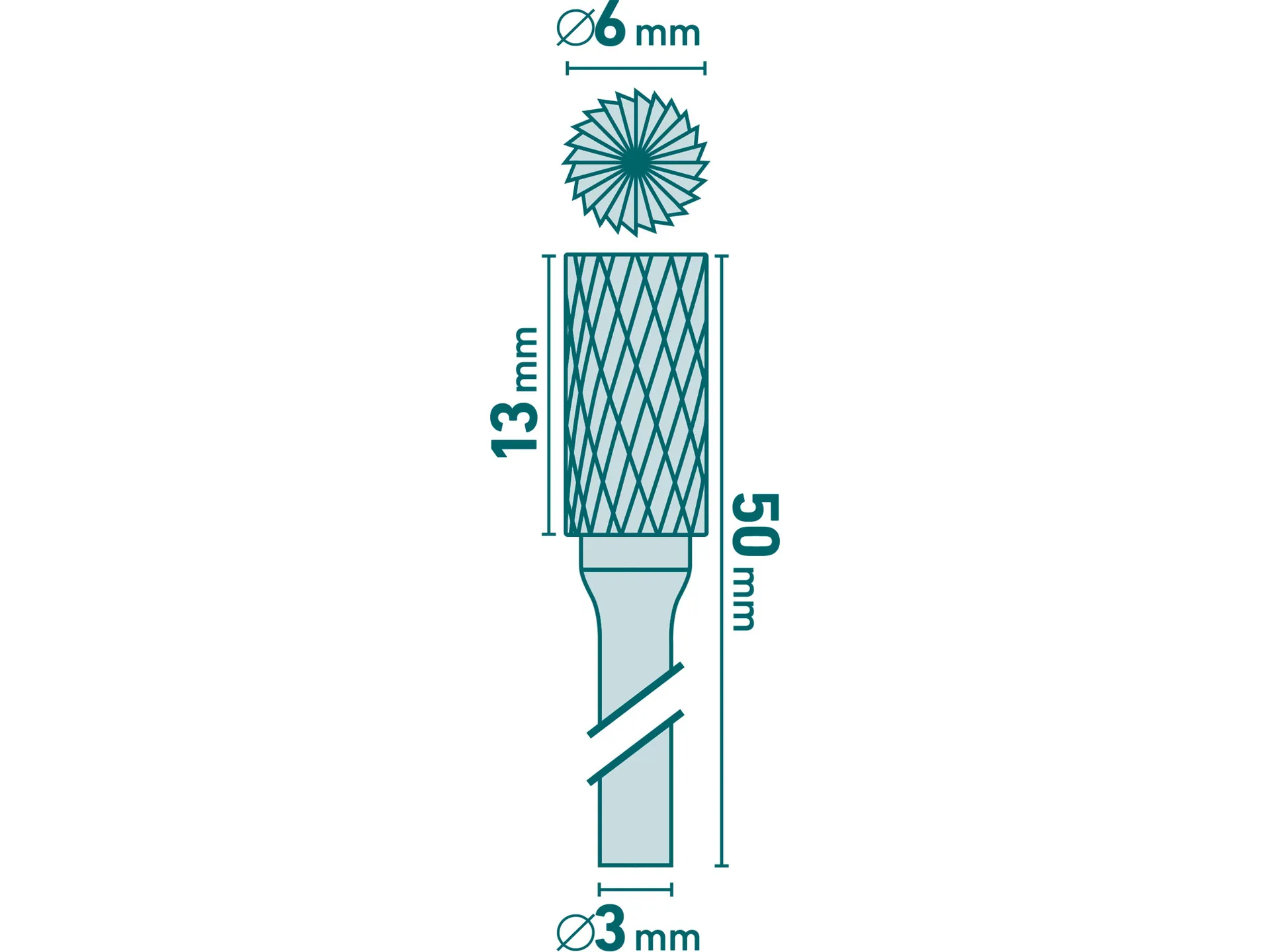 Fréza karbidová, válcová s čelním ozubením, ⌀6x13mm, ⌀stopky 3mm, sek střední (double-cut) EXTOL INDUSTRIAL 8703813