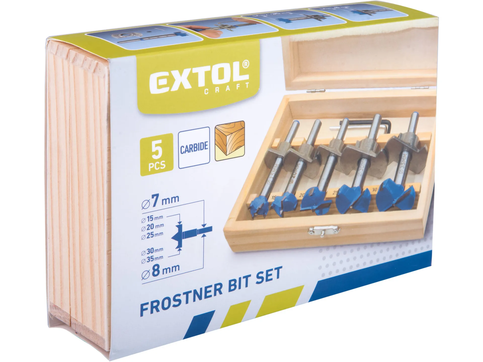 Frézy-sukovníky, do dřeva s hloubk. dorazem, sada 5ks,, ⌀15-20-25-30-35mm EXTOL CRAFT 902003