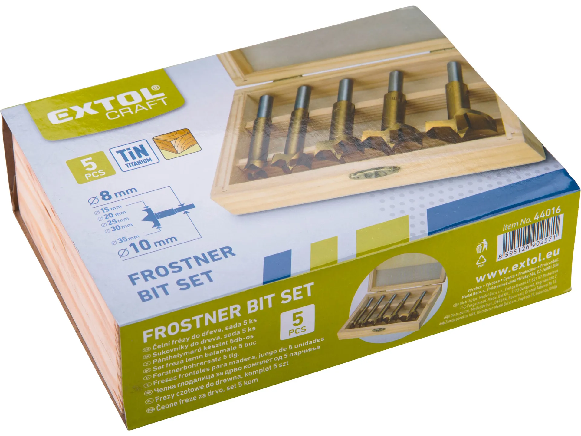 Frézy-sukovníky do dřeva, sada 5ks s sk plátky, o 15-20-25-30-35mm, stopka 8-10mm EXTOL PREMIUM 8...