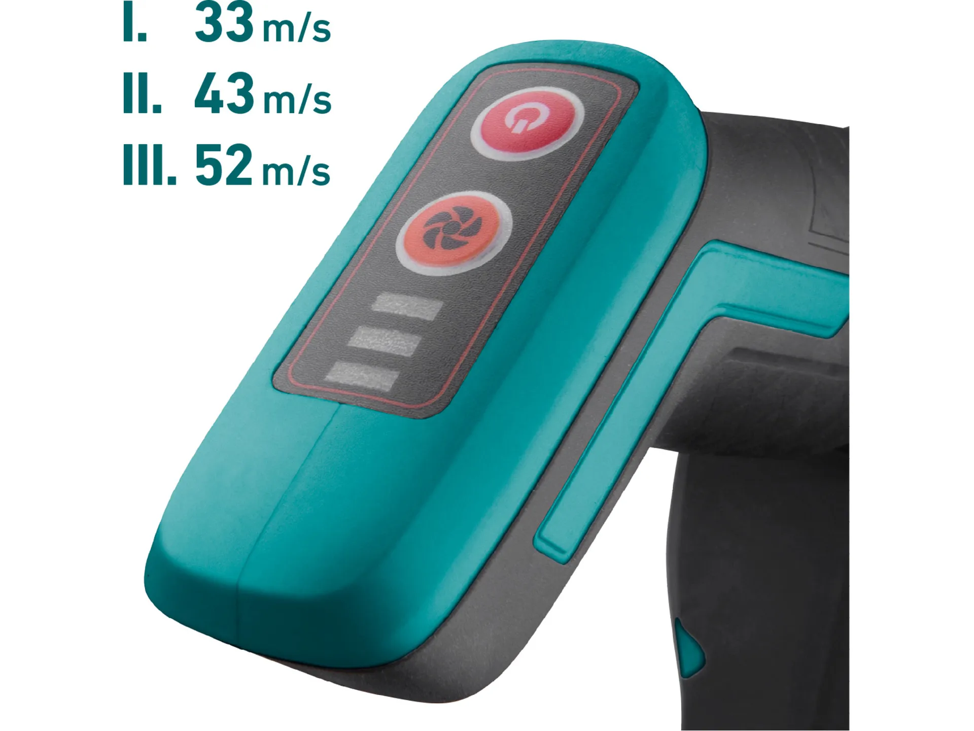 - Rychlost průtoku vzduchu: I. 33m/s, II. 43m/s, III. 52m/s