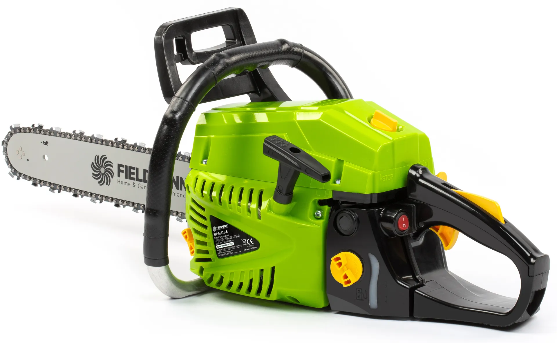 - Benzínová pila Fieldmann splní jakoukoliv výzvu při prořezávání větví, kácení menších stromů, řezání palivového dřeva a obecně při údržbě zahrady a okolí domu. Výborně vyvážený, nepříliš těžký, a přitom výkonný stroj je vybaven motorem o obsahu 56,5 cm3. Tento dvoutaktní jednoválec pak nabídne dostatečný výkon 2,5 kW. Samozřejmostí je také snadná údržba. Kvalitní řetěz Fieldmann je mazán automatickou olejovou pumpou, což snižuje tření a zvyšuje životnost řetězu, sílu mazání lze pohodlně nastavit pouhým šroubovákem. Kromě nezbytného nářadí pro manipulaci s lištou a řetězem, je součástí balení také kalibrovaná nádoba pro přípravu palivové směsi v odpovídajícím poměru.
