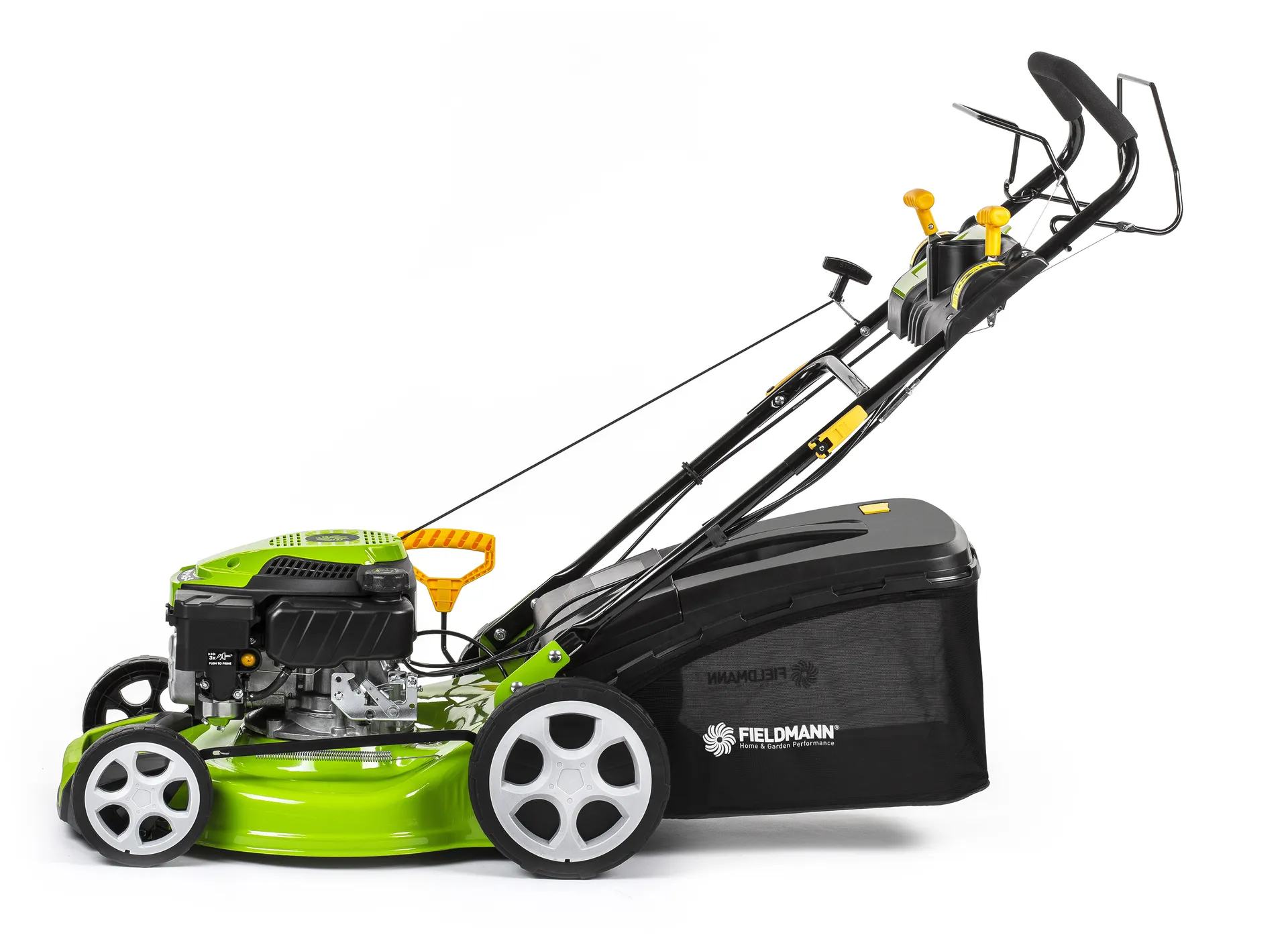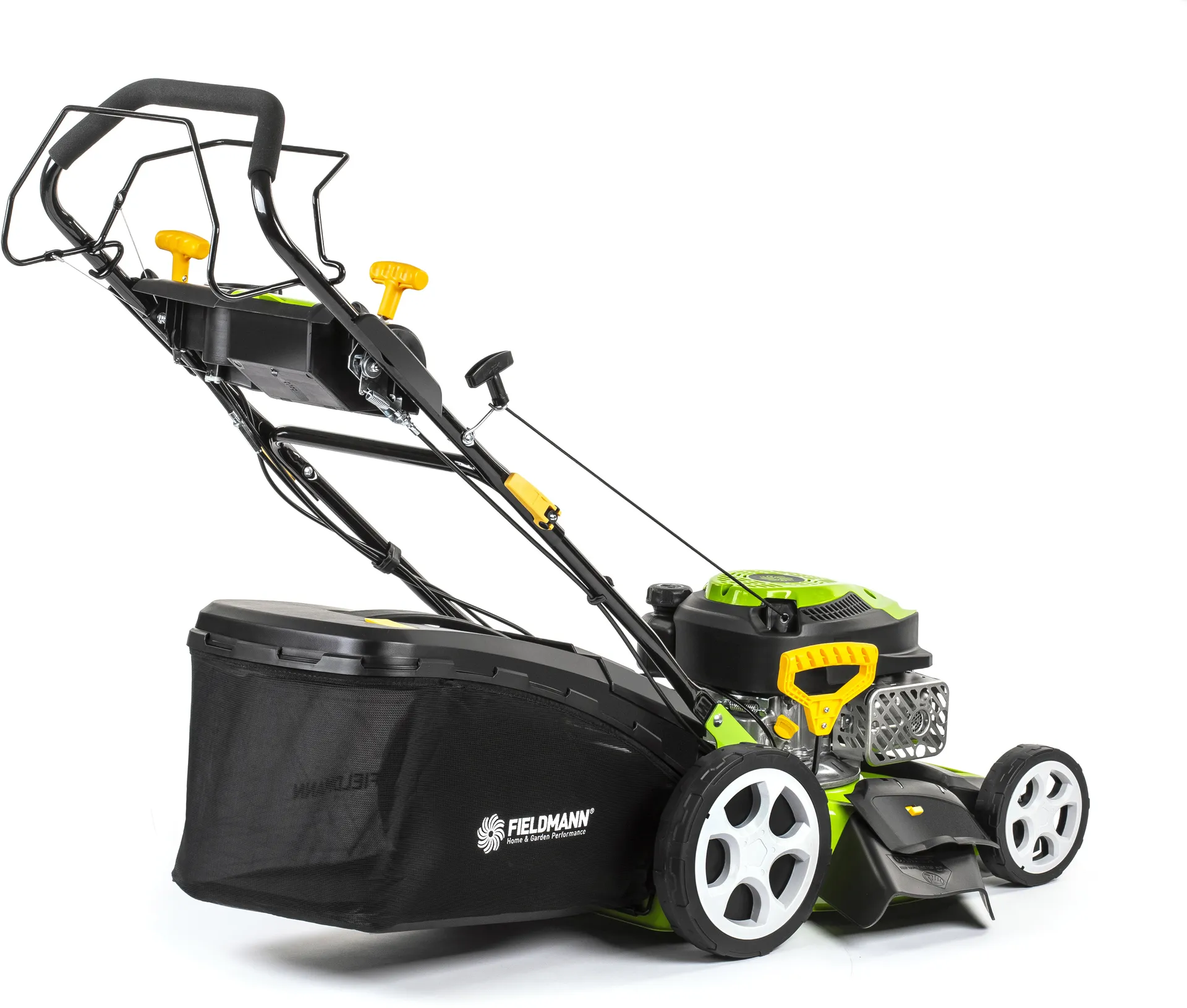 - Benzínovou sekačku oceníte především na zahradách a pozemcích, které nejsou připojené k elektrické síti. Jednoduše se ovládá a odpadají starosti s hledáním zásuvky, omezenou mobilitou nebo dokonce přeseknutím kabelu. Čtyřtaktní motor o výkonu 2,5 kW a šířka záběru 46 cm se nejlépe uplatní na zahradách o velikosti do 1 200 m². V náročnějším terénu vám zajisté přijde vhod i možnost vybrat si různé rychlosti pojezdu, a to až ze 4 možností. Podle vašichpreferencí a potřeb trávníku si centrální pákou nastavíte výšku sečení až na 8 různých pozic v rozsahu 25–70 mm. Sběrný koš o obsahu 62 l je vybavený ukazatelem zaplnění a upozorní vás, kdy je zapotřebí nádobu vyprázdnit. To však není jediná možnost, jak naložit s posekanou trávou. Díky 4v1 máte na výběr, zda chcete využít sběrného koše, použít boční, či zadní odhoz nebo zvolit variantu mulčování. Kvůli solidnímu ocelovému šasi je celková váha sekačky 32 kg. Díky funkci pojezdu a kvalitním kolečkám s ložisky si toho ani nevšimnete. Uživatelský komfort ještě zvyšuje polohovatelné madlo s měkčeným potahem.