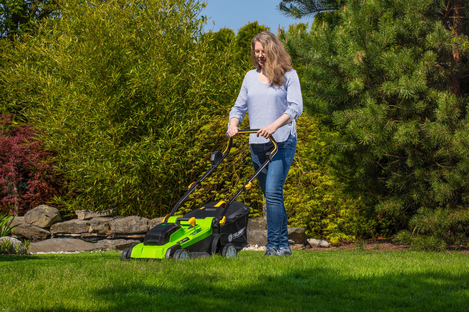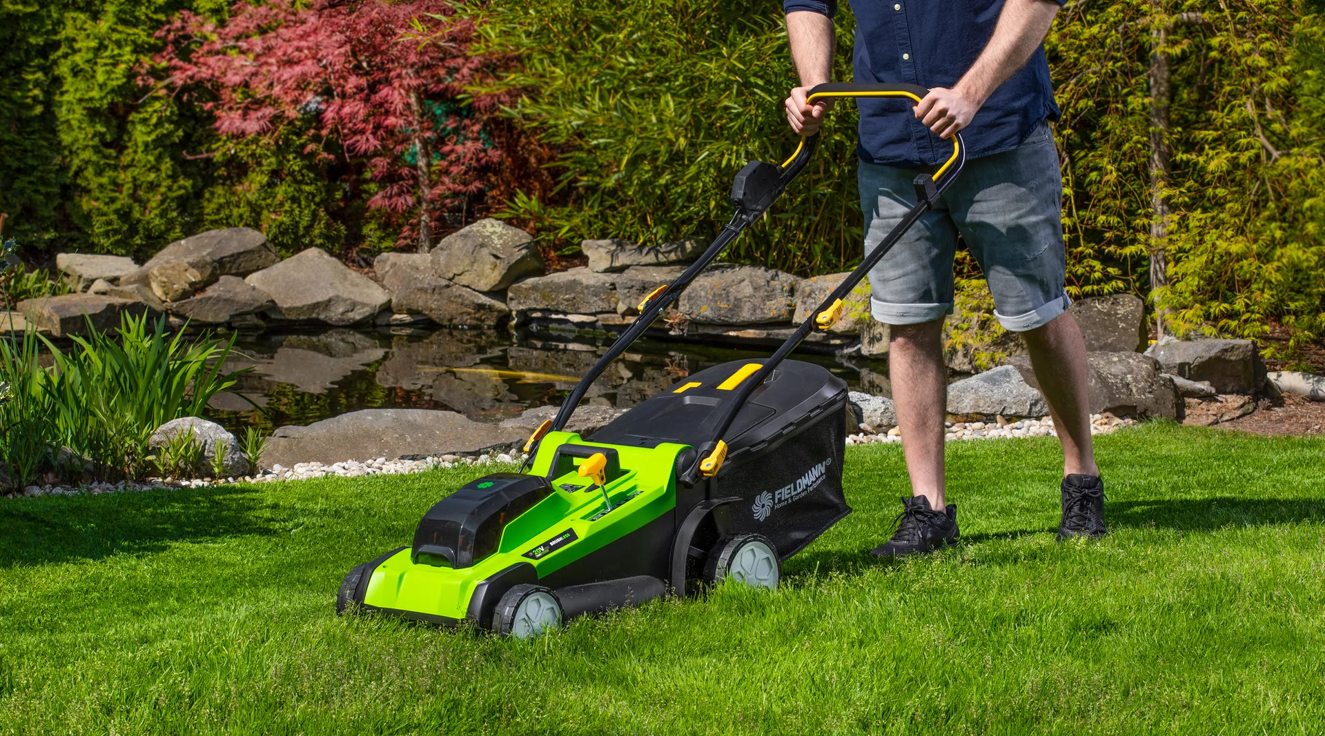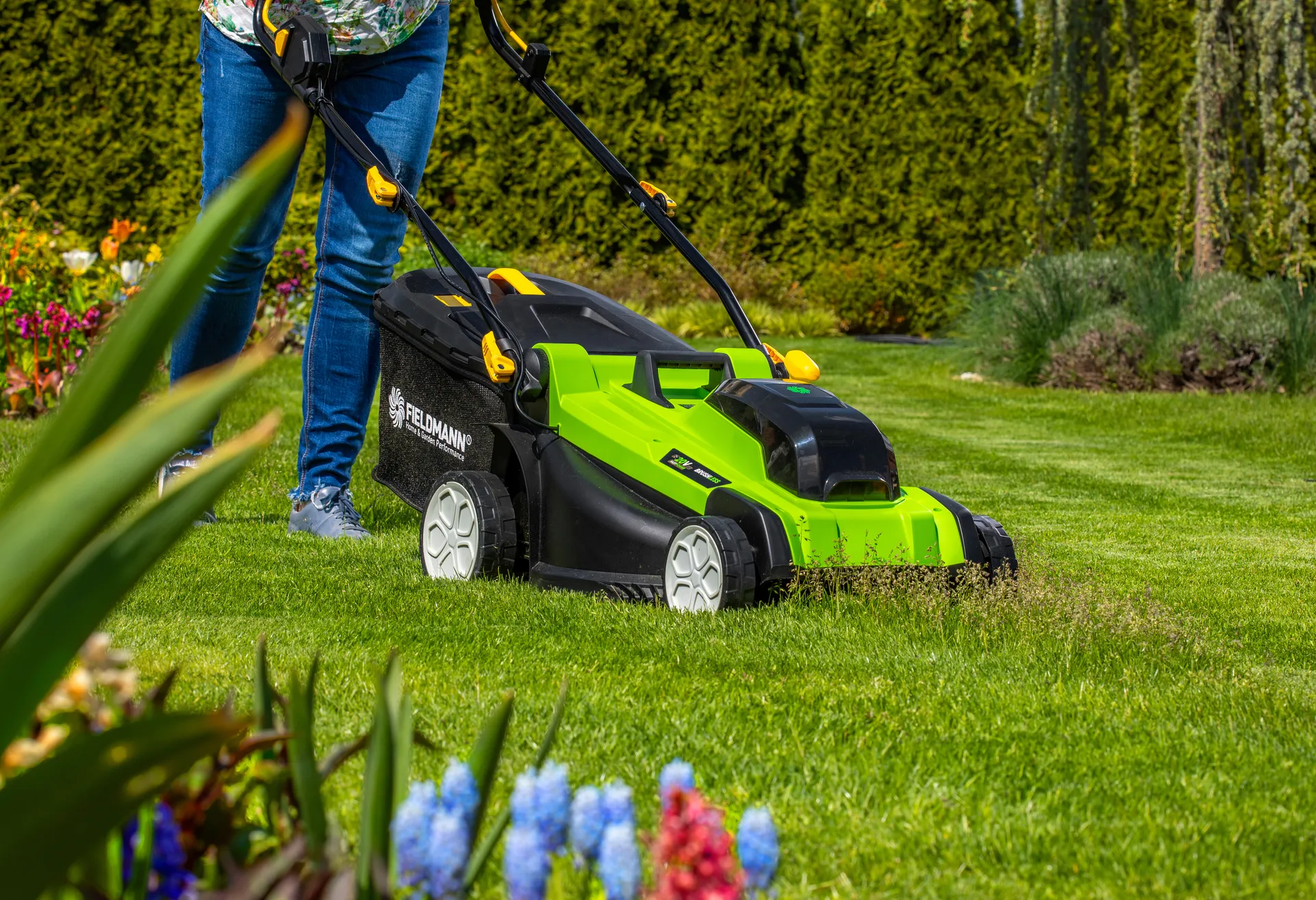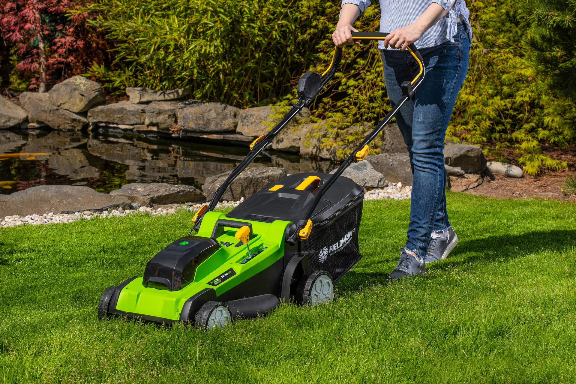- Nejvyšší model akumulátorové sekačky na trávu značky FIELDMANN si poradí s každou zahradou do rozlohy 750 m2. Je vybavena moderním bezuhlíkovým motorem s dlouhou životností a nulovými nároky na údržbu. Bezpečnostní spínač brání náhodnému zapnutí čepele a robustní konstrukce z odolného plastu je zárukou dlouhé životnosti. Pro perfektní manipulaci se strojem je sekačka osazena robustními kolečky z odolného plastu. Sekačka dosahuje vysokého výkonu díky plnému využití síly 2x 20V akumulátorů ve spojení s elektronickou řídící jednotkou. Je možno použít akumulátory o kapacitách 2Ah/4Ah které jsou kompatibilní do všech výrobků společnosti FIELDMANN řady FAST POWER 20V.