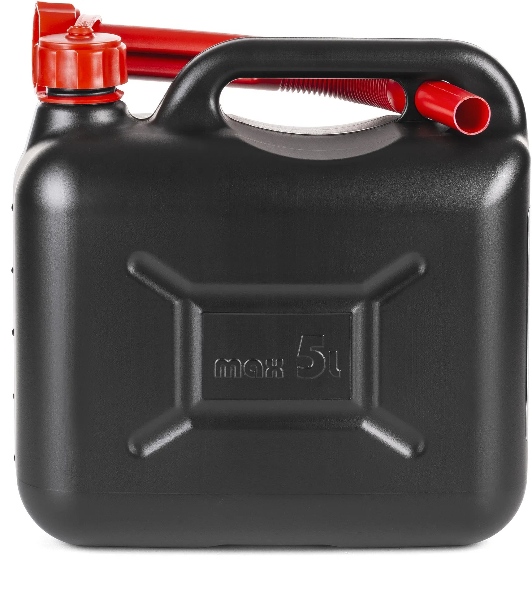 - Univerzální plastový kanystr s obsahem 5L.Vhodný na přepravu pohonných hmot.