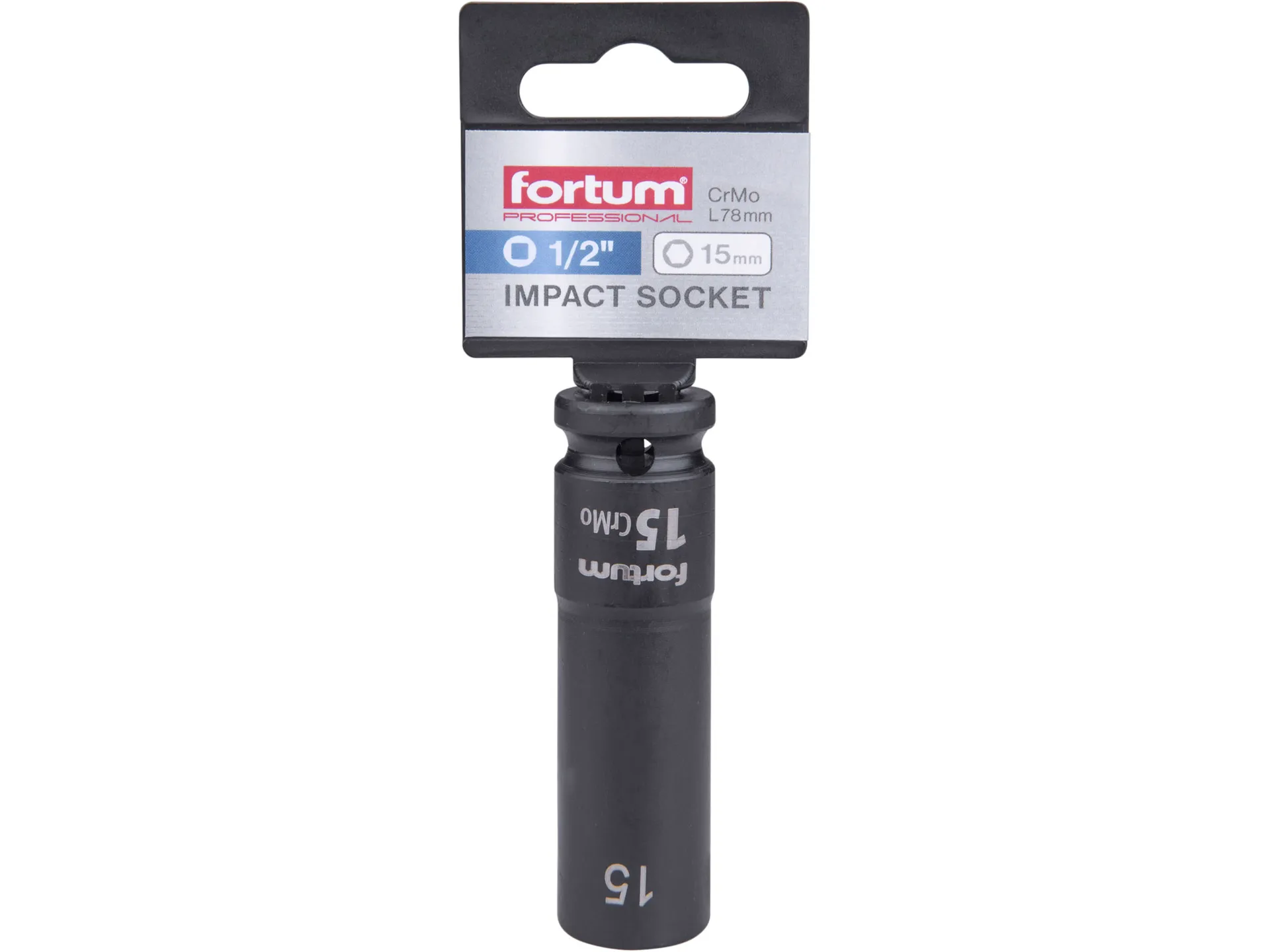 Hlavice nástrčná rázová 1/2", 15mm, l 78mm, crmov FORTUM 4703215
