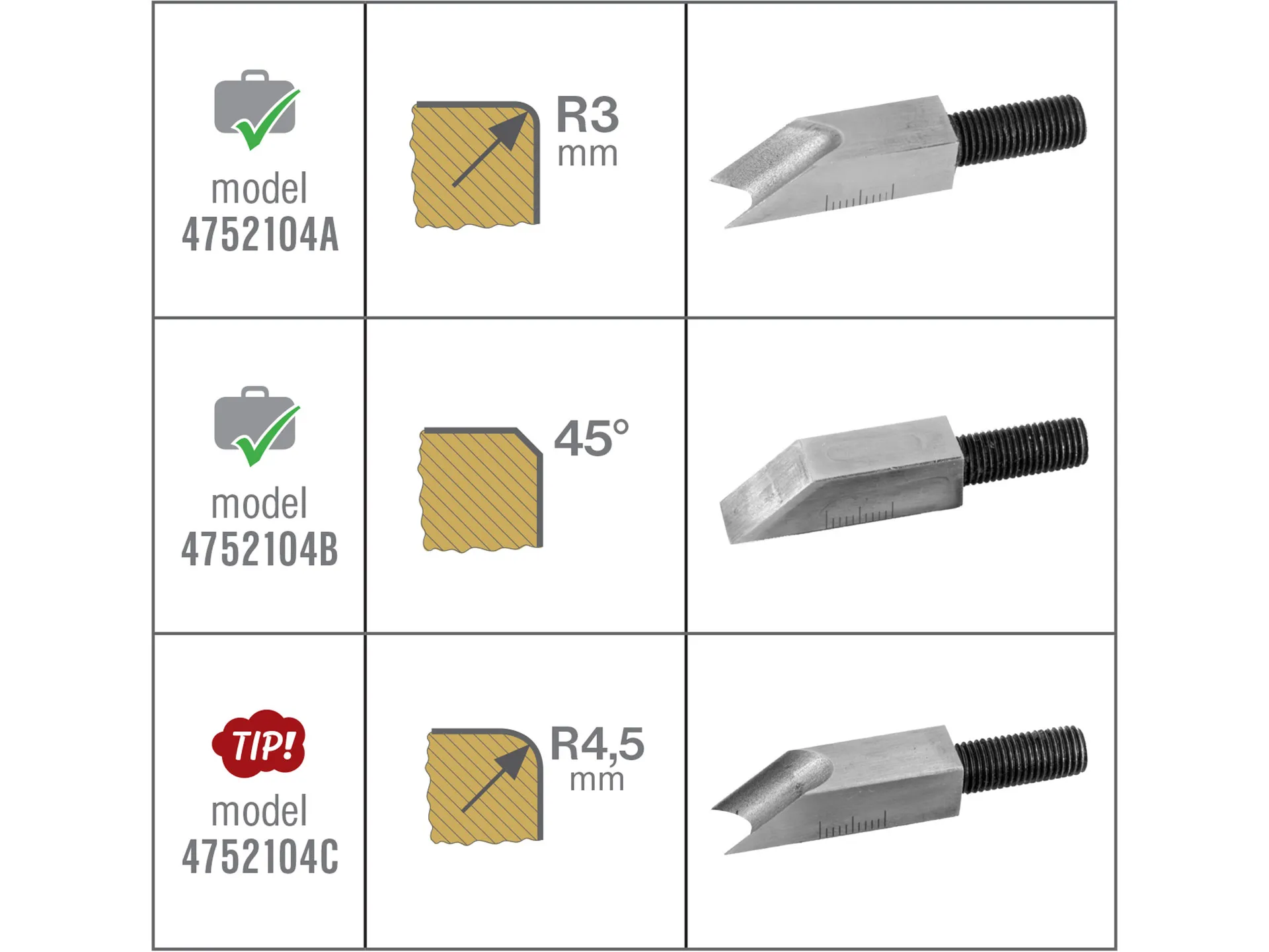 Hoblík na srážení hran nastavitelný, 2nožové profily (45° - r3mm/1/8") FORTUM 4752104