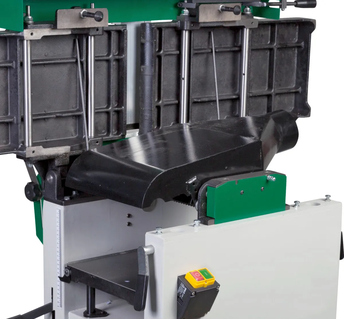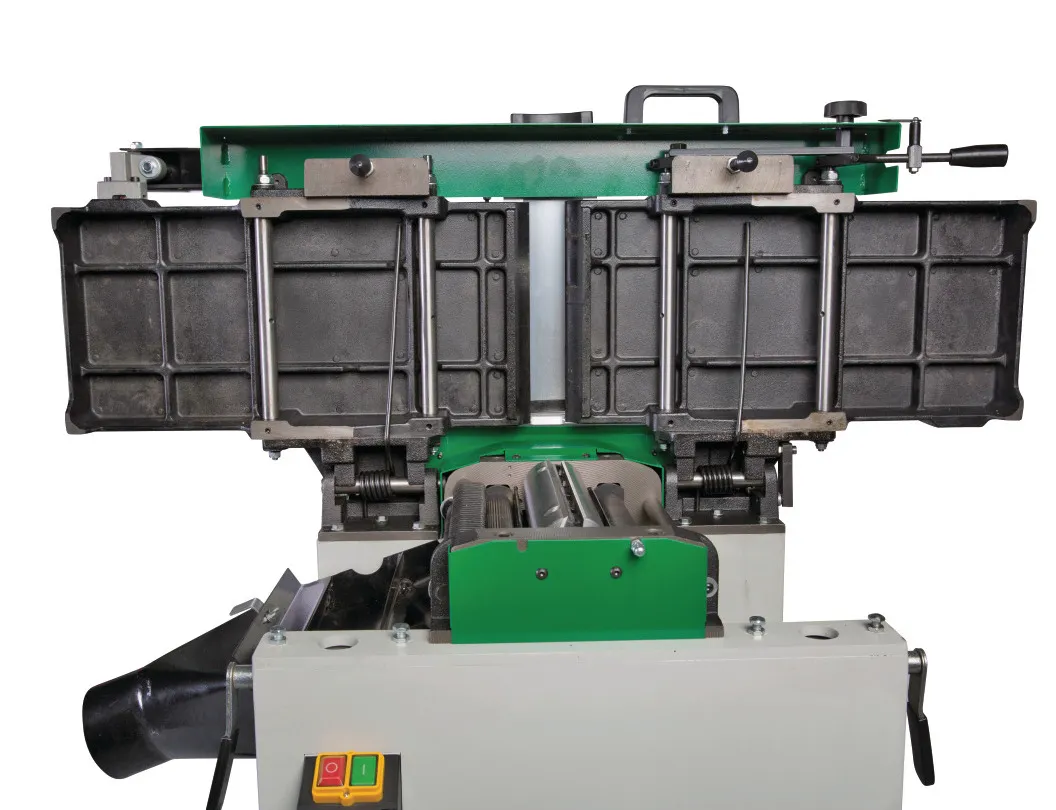 - Podávací válec s přímým ozubením a výstupní přítlačný válec s pogumovaným povrchem pro rovnoměrný posuv bez poškození obrobku
