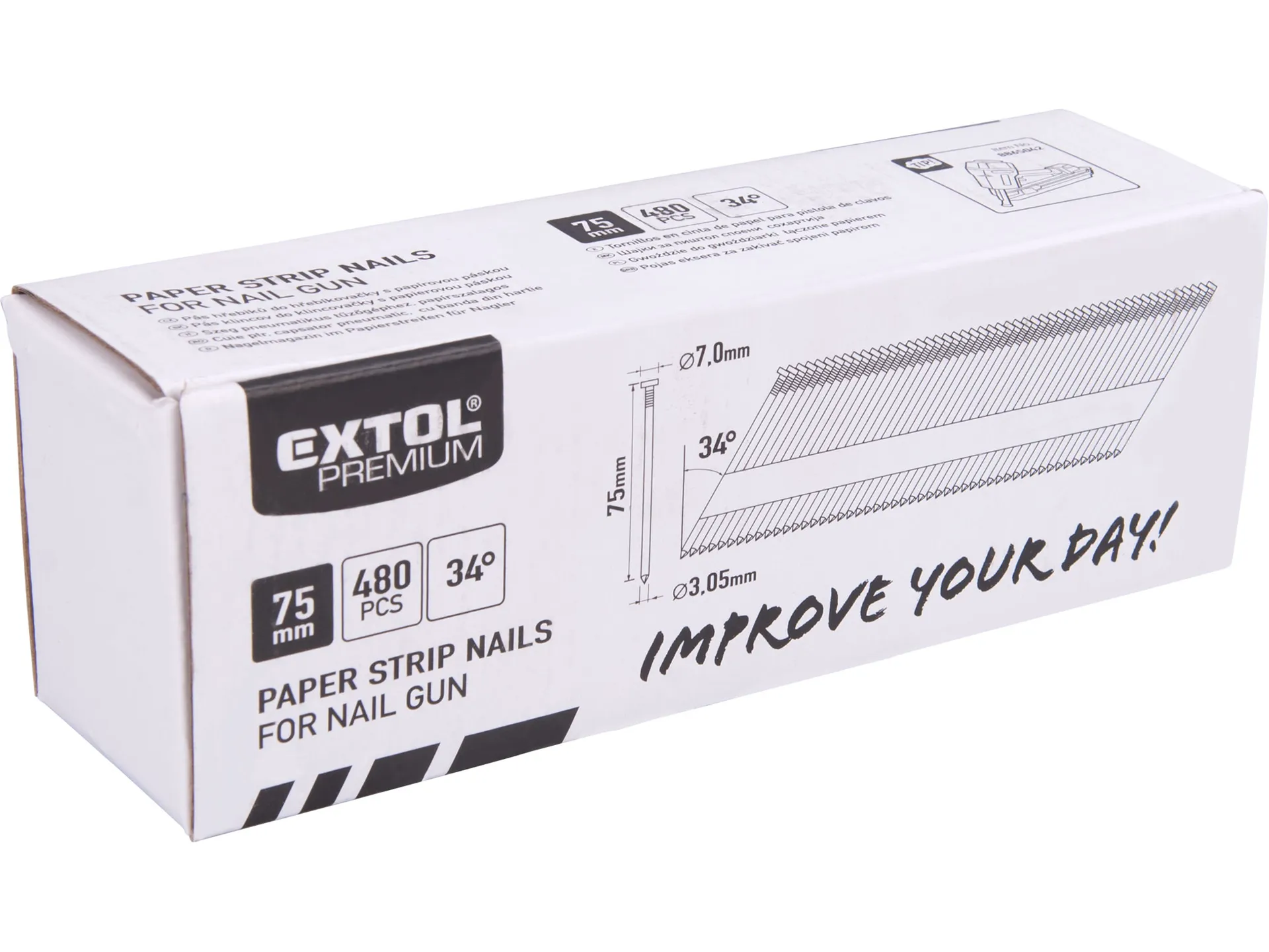 Hřebík nastřelovací, 480ks, 75mm, ⌀3,05mm, vroubkovaný EXTOL PREMIUM 8862604