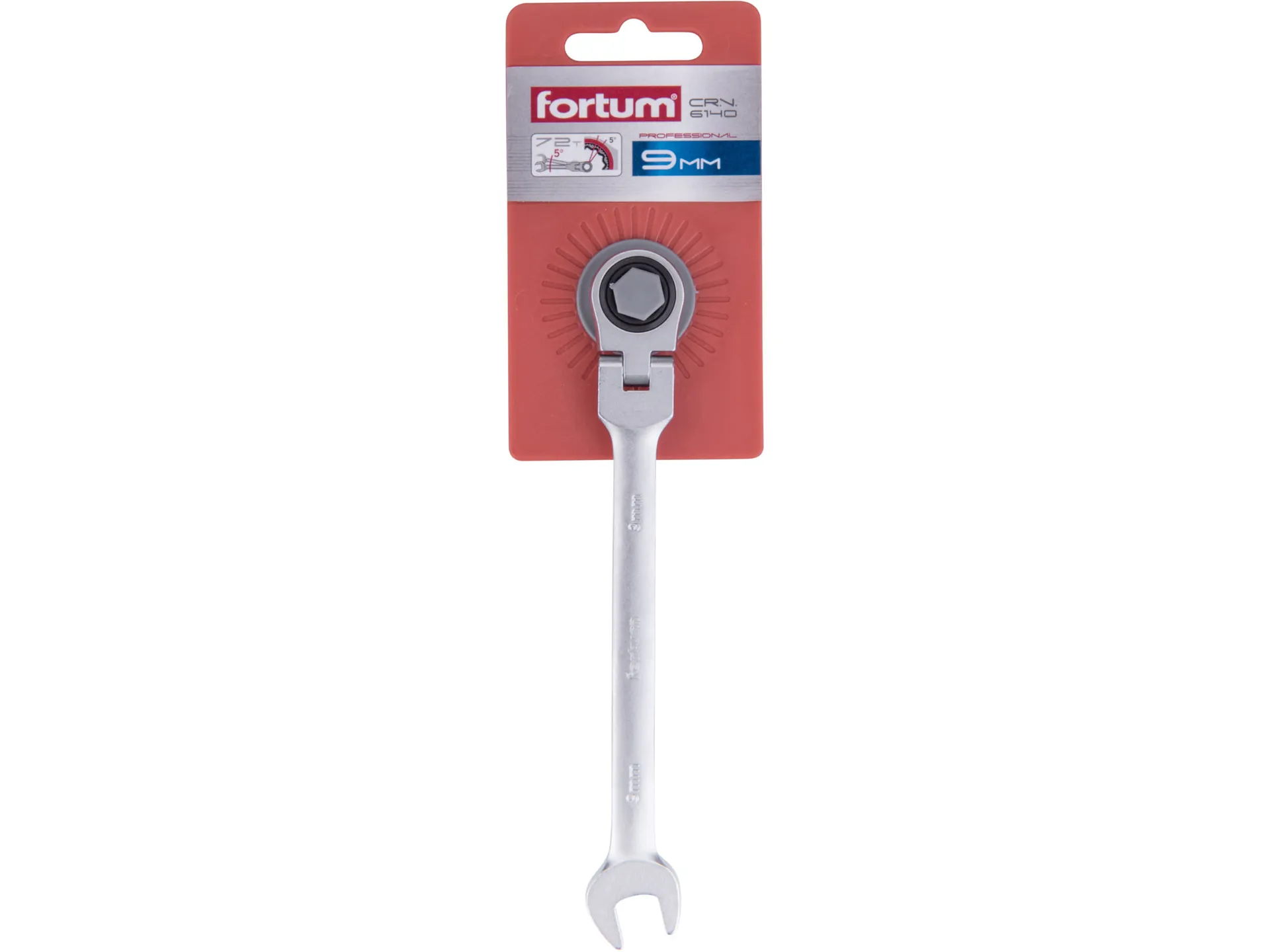 Klíč ráčnový očkoplochý s kloubem, 72 zubů, 9mm, l 157mm FORTUM 4720209