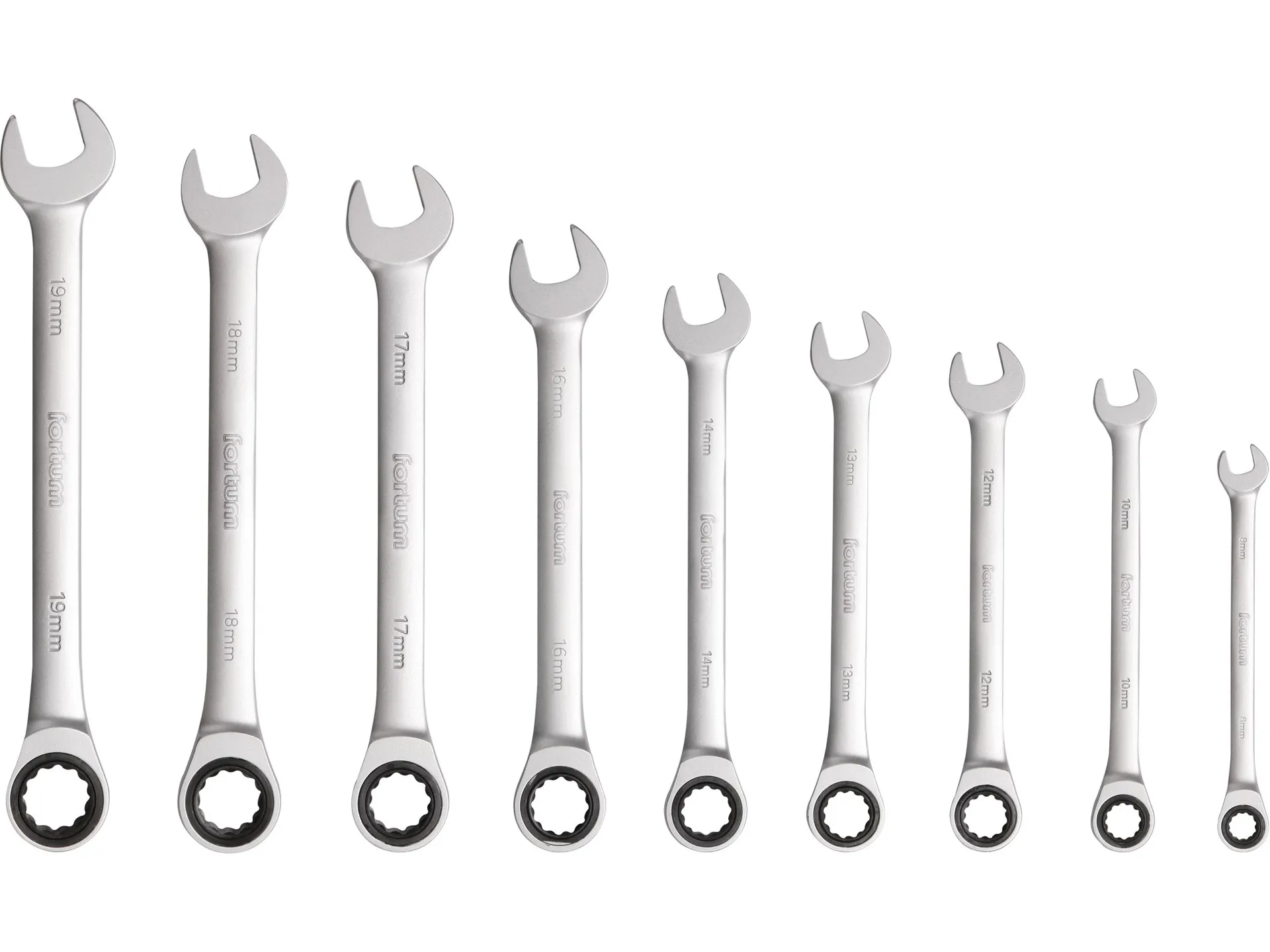 Klíče ráčnové očkoploché, sada 9ks, 8-19mm FORTUM 4720104