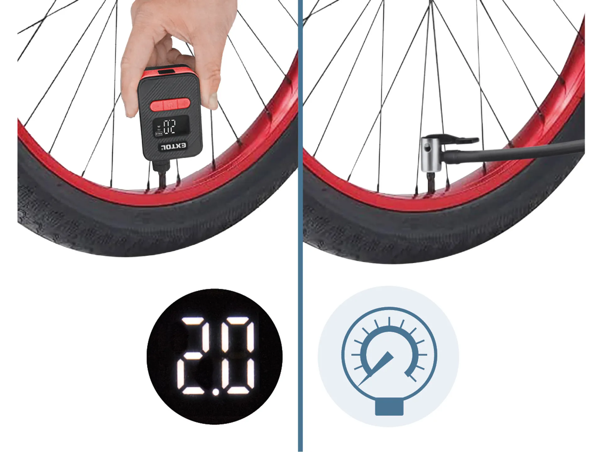 - Malý akumulátorový kompresor o hmotnosti pouhých 150 gramů je ideálním řešením pro cyklisty, kteří hledají lehké a multifunkční zařízení pro huštění kol v terénu. Díky kompaktním rozměrům se pohodlně vejde do brašny na rám nebo pod sedlo nebo i do kapsy dresu. Promyšlená konstrukce spojuje nízkou hmotnost, snadnou obsluhu a výkon dostatečný pro všechny běžné typy plášťů. Lithium-iontová baterie poskytuje energii na nafouknutí několika kol a nabíjí se přes USB, což umožňuje rychlé dobití z powerbanky nebo notebooku. Maximální tlak dosahuje 10,3 baru, což postačí jak pro horská, tak silniční kola. Krátká 14cm hadička zajišťuje pohodlné připojení k ventilku, přičemž kompresor lze použít i bez ní. V základní výbavě jsou redukce pro oba nejběžnější typy ventilků – Schrader i Presta. S vhodným adaptérem lze kompresorem nafouknout i míče či jiné drobné vybavení. Robustní plastové tělo odolá běžným nárazům, karabina umožňuje snadné uchycení k batohu nebo rámu kola. Ovládání je jednoduché – stačí nastavit požadovaný tlak, nasadit na ventilek a spustit plnění. Po dosažení tlaku se přístroj automaticky vypne, čímž šetří baterii. Tento lehký kompresor představuje moderní alternativu k ruční pumpě, spojující pohodlí, přesnost a spolehlivost.